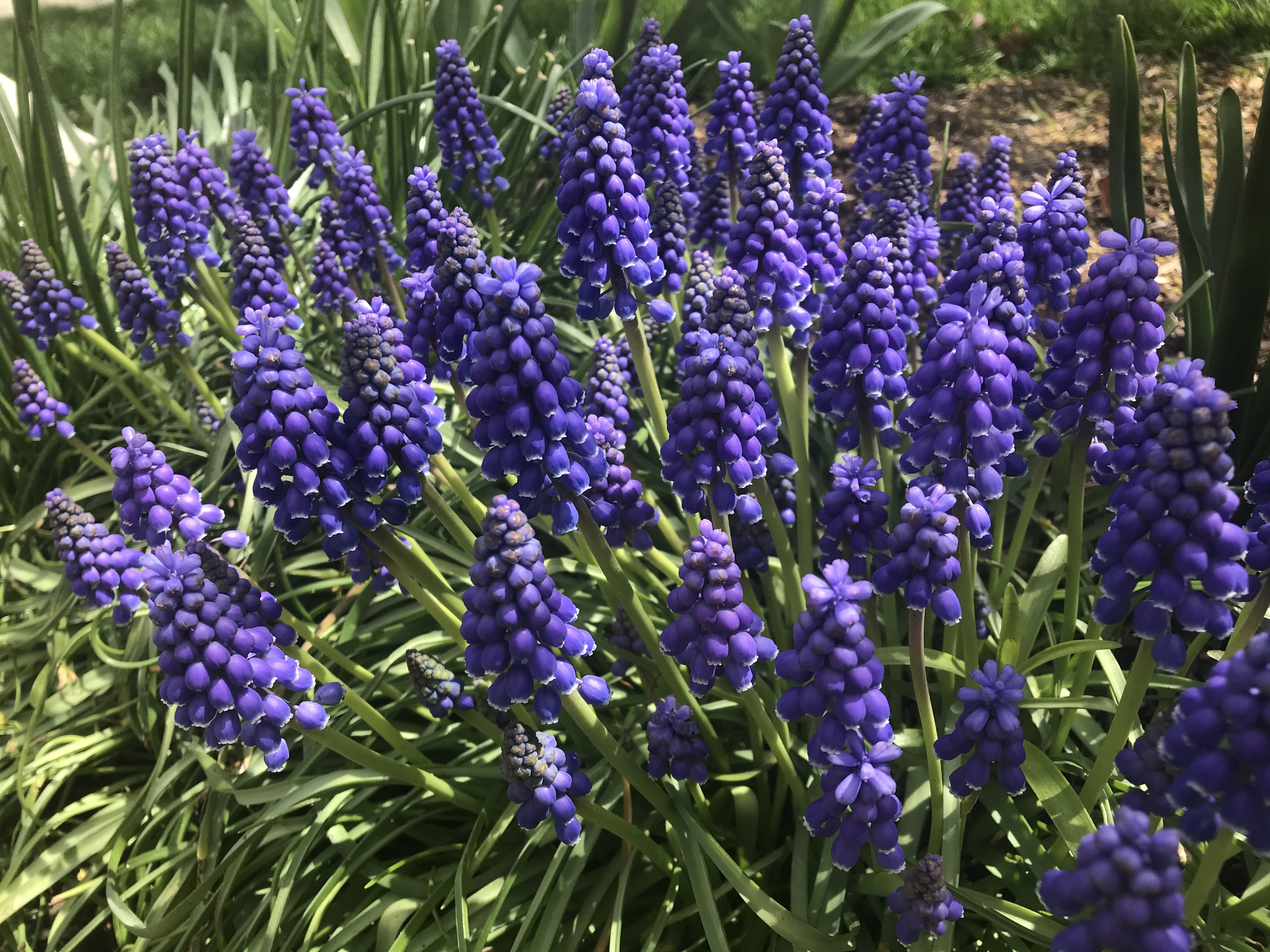 When planting in the garden, muscari prefer a full sun location to partial shade, and need to be planted in the fall so they can rest and prepare for their spring performance. Typically, muscari will flower in April-May and will stay in bloom for 3-4 weeks or more. They prefer well-draining soil, as soggy soil will cause the bulbs to rot.
