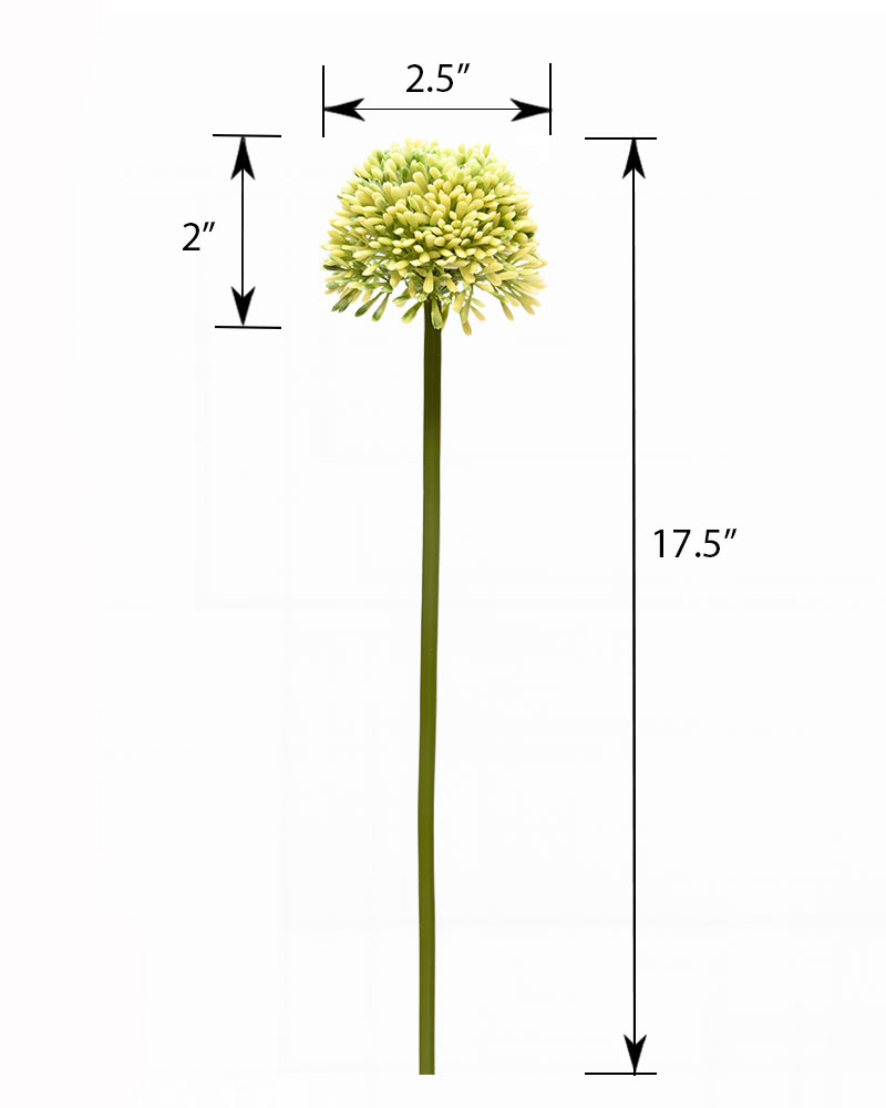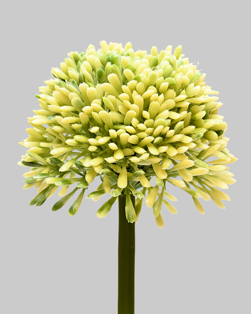 This Allium features a slightly smaller flower head than some of our other varieties, making it perfect for more compact or delicate arrangements. True to the classic Allium look, it showcases one striking bloom where all the detail and attention come together beautifully. With soft green and white tones, this stem brings subtle elegance and is ready to shine in any setting.
