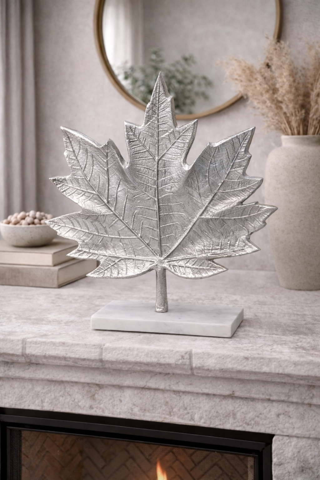 This maple leaf decorative sculpture is a true stunner! Bold in size, style, and intricate detail, this piece makes a striking statement and is perfect for adding a touch of nature-inspired elegance to any room in the home or office.