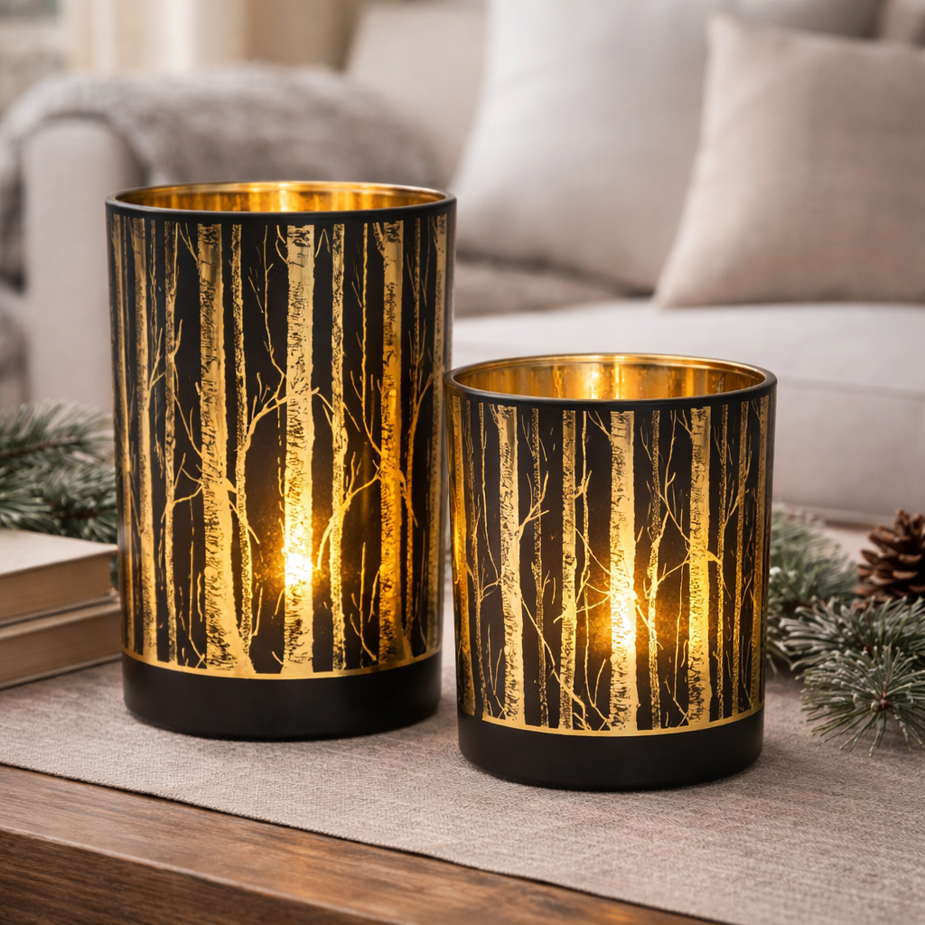 With a sleek black and gold mirror finish, this decorative piece features an elegant birch tree design that adds a touch of nature-inspired charm. When illuminated, the subtle pattern transforms—revealing intricate details and a warm, reflective glow that enhances its sophisticated look. Perfect for adding ambient lighting and visual interest to any modern or rustic space.