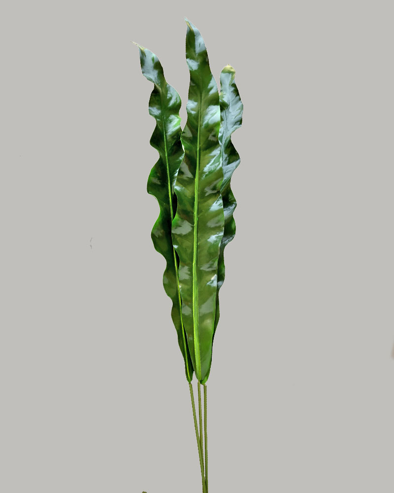 This Bird’s Nest Fern Frond leaf features three striking stems with a high-gloss, rippled leaf pattern that mimics nature beautifully. With its generous length, it’s ideal for adding height, texture, and a touch of drama to any arrangement. A bold and elegant choice to elevate your floral designs.