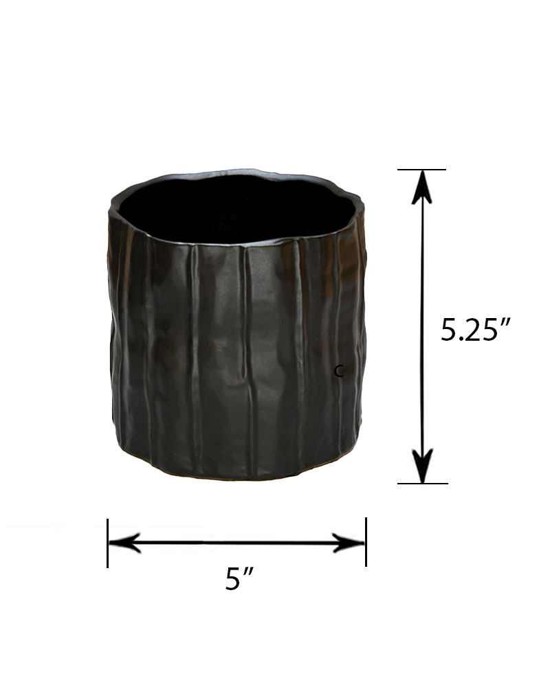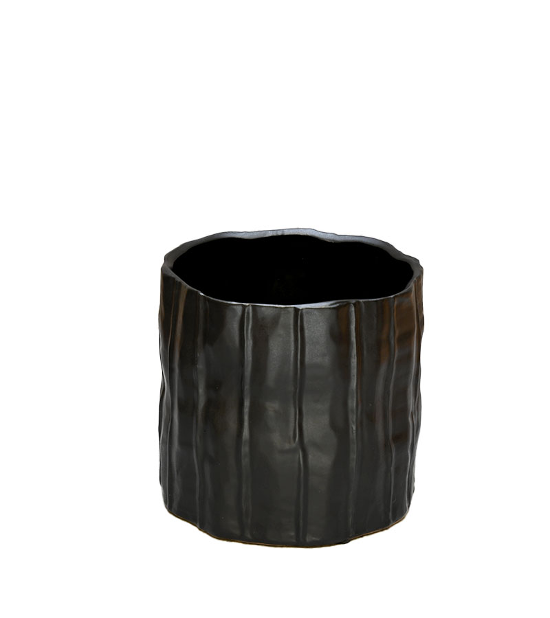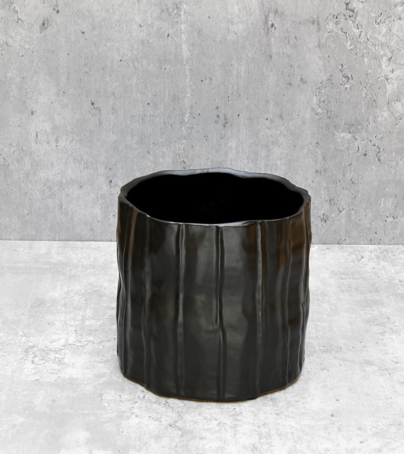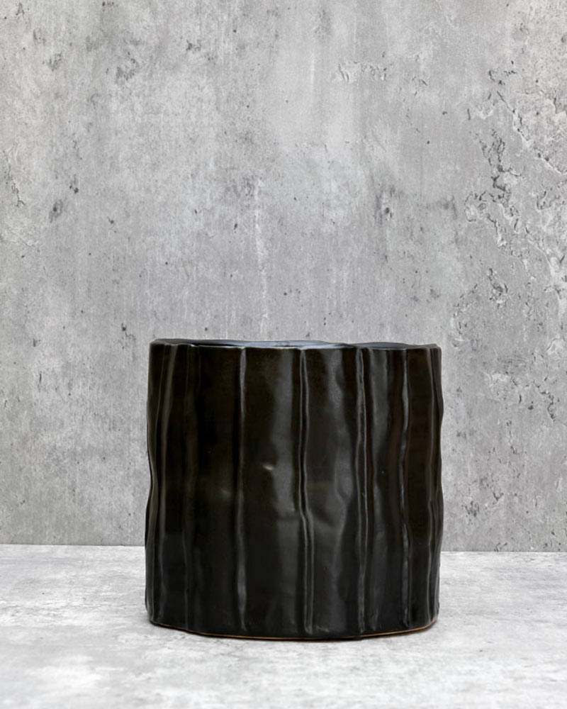 With its vertical ripple texture and soft, glossed black finish, this container adds a modern touch of texture and colour to any space.