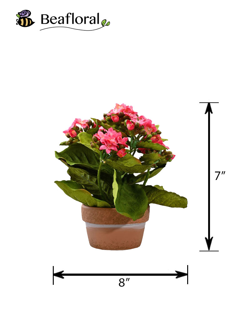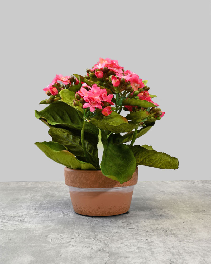 This mini kalanchoe, nestled in a charming terracotta clay pot, is the perfect accent for any shelf, mantle, or tabletop. Featuring delicate pink buds and lifelike blooms, it captures the beauty of a real plant—without any need for watering or upkeep. Its compact size and natural look make it an easy way to add a touch of effortless greenery and charm to any space.
