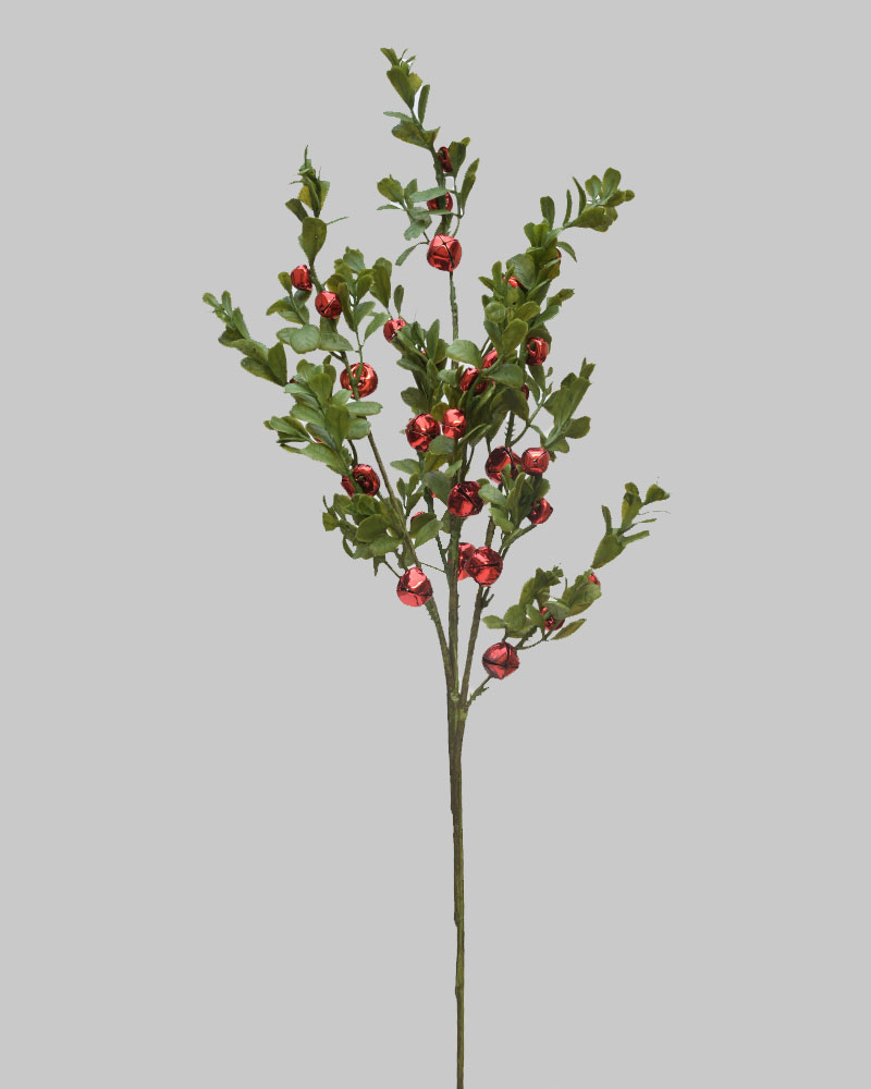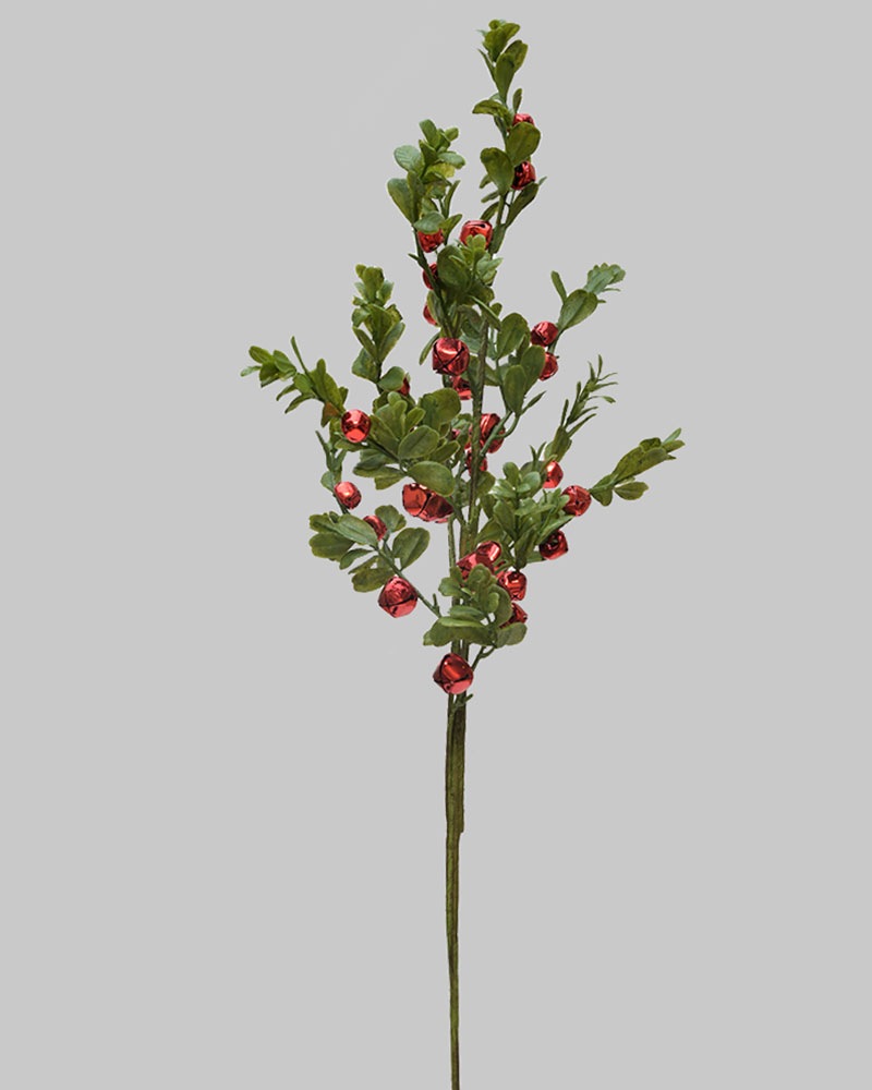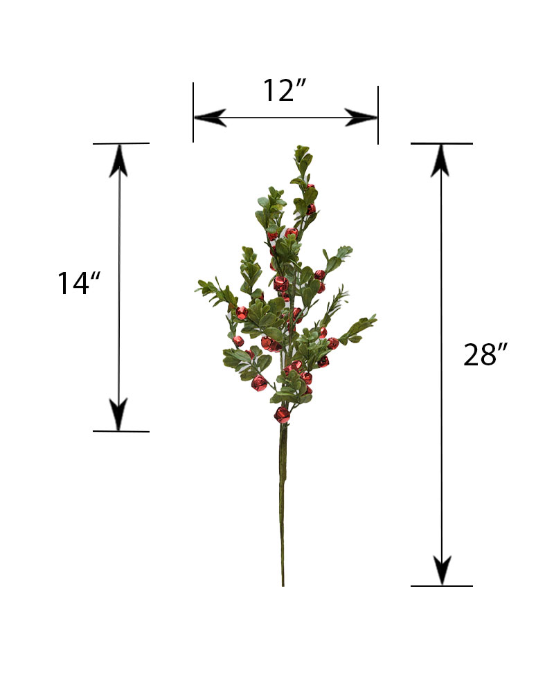 This festive greenery stem is adorned with bright red jingle bells nestled among lush green leaves, adding a playful touch to any holiday arrangement. The metallic bells bring a cheerful sparkle and gentle charm, making it ideal for Christmas décor, centrepieces, or wreaths. With its natural foliage and lively accents, this stem captures the spirit of the season, blending traditional greenery with a whimsical, musical twist.