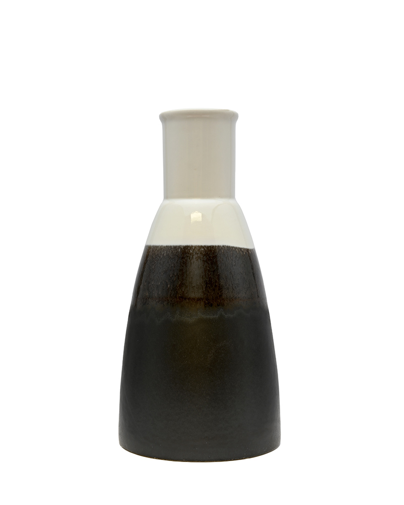 Conical in shape and featuring a smooth gradient from black-brown to white, this container adds both height and a rich depth of colour to any room or arrangement. Its sleek form and striking tones make it a subtle yet stylish accent piece.