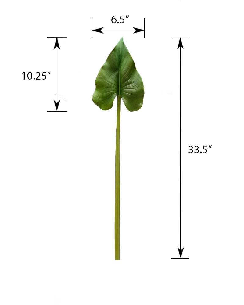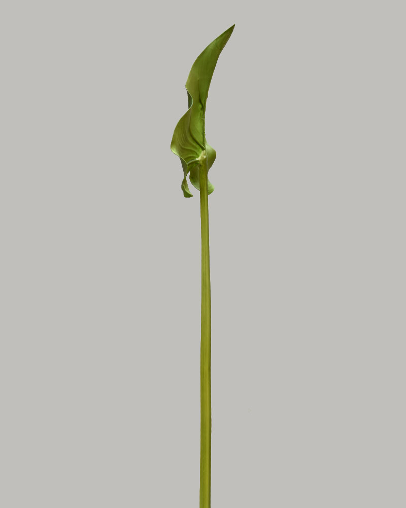 This Calla leaf features a long, flexible stem topped with a vibrant green leaf, making it ideal for arrangements that need added height or a touch of fresh greenery. Whether used as a structural element or a subtle filler, this leaf helps bring balance and a natural finish to any design.