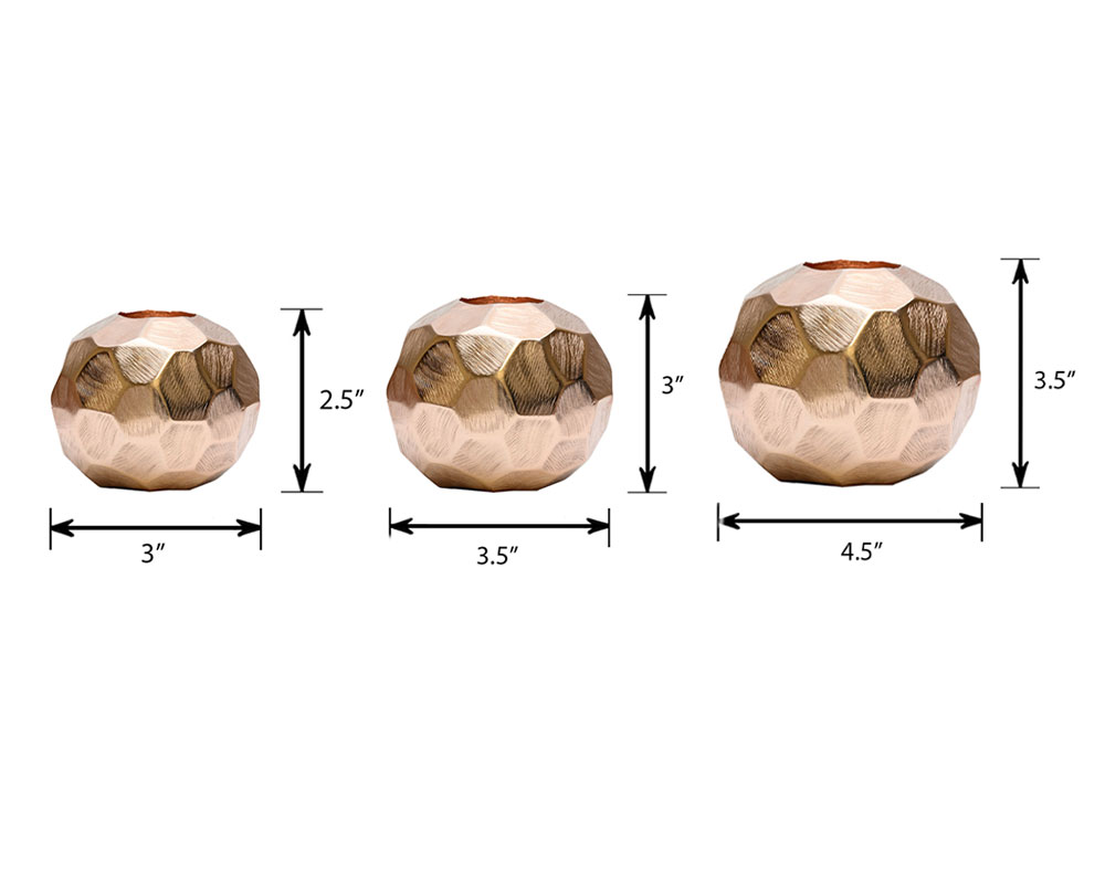 With a brushed copper-like finish and a carved, angled design, these tealight holders are the perfect tabletop accent. Available as a set of three in varying sizes, they form a stylish trio that brings warmth, texture, and a modern touch to any space. Whether grouped together for a bold statement or placed separately to create soft, ambient lighting throughout a room, these holders offer a beautiful and versatile décor option for your home.