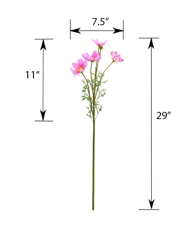 Cosmos are dainty, daisy-like flowers that bring charm and colour to gardens all summer long. With their delicate foliage and sturdy stems, they’re known for their airy elegance—and this artificial stem captures that beauty in stunning detail. Featuring multiple soft pink blooms with a natural-touch finish, these flowers don’t just look real—they feel real too. Part of our Natural Touch lineup, this lifelike Cosmos stem adds a gentle pop of colour and character to any arrangement.