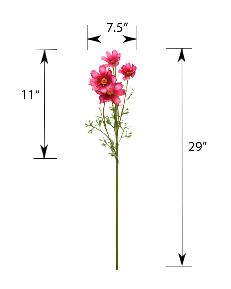 Cosmos are dainty, daisy-like flowers that brighten gardens throughout the summer months with their soft, graceful beauty. With fine, delicate leaves and sturdy stems, they’re known for their vibrant, cheerful blooms— and this artificial stem captures that charm perfectly. Featuring multiple redish pink flowers crafted with incredible detail and a natural-touch finish, they look and feel just like the real thing. Part of our Natural Touch collection, these lifelike Cosmos bring a pop of colour, character, and elegance to any arrangement.