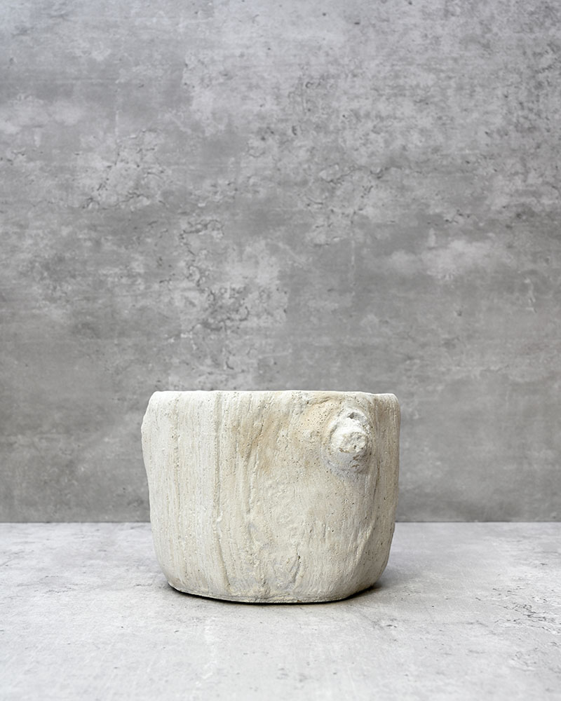 Inspired by nature, this container replicates the look of a tree stump, bringing a touch of the outdoors inside. Its soft white colour and bark-like texture offer a subtle yet striking appeal, making it a perfect choice for those seeking a natural, understated statement piece.