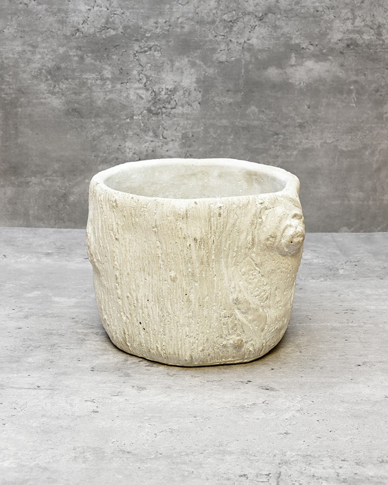 Inspired by nature, this container replicates the look of a tree stump, bringing a touch of the outdoors inside. Its soft white colour and bark-like texture offer a subtle yet striking appeal, making it a perfect choice for those seeking a natural, understated statement piece.
