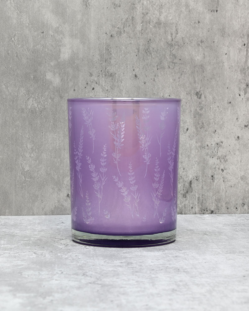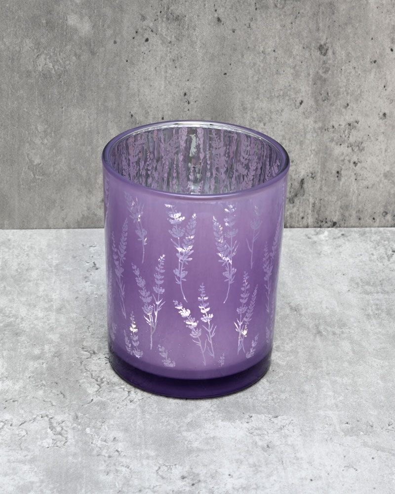 With a purple mirror finish and a delicate lavender silhouette pattern, this container offers a subtle yet elegant look. When lit from within, the design comes to life—highlighting the intricate detail and enhancing its full visual impact. A beautiful piece that adds both charm and sophistication to any setting.