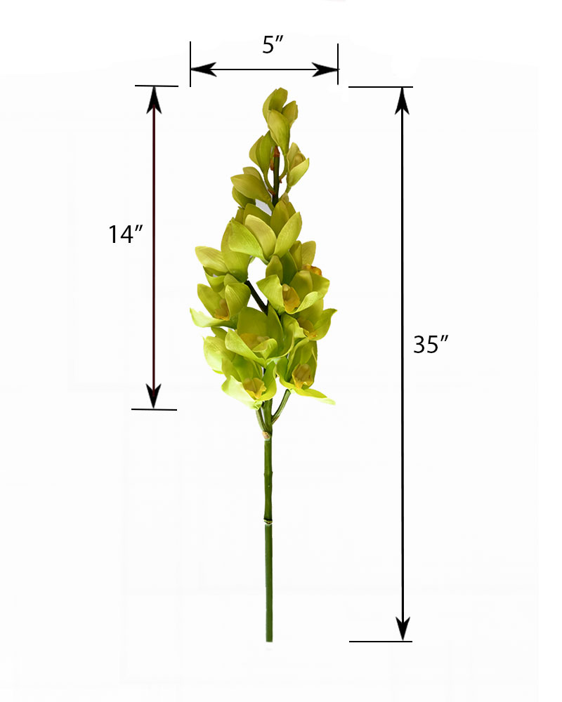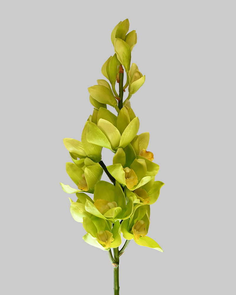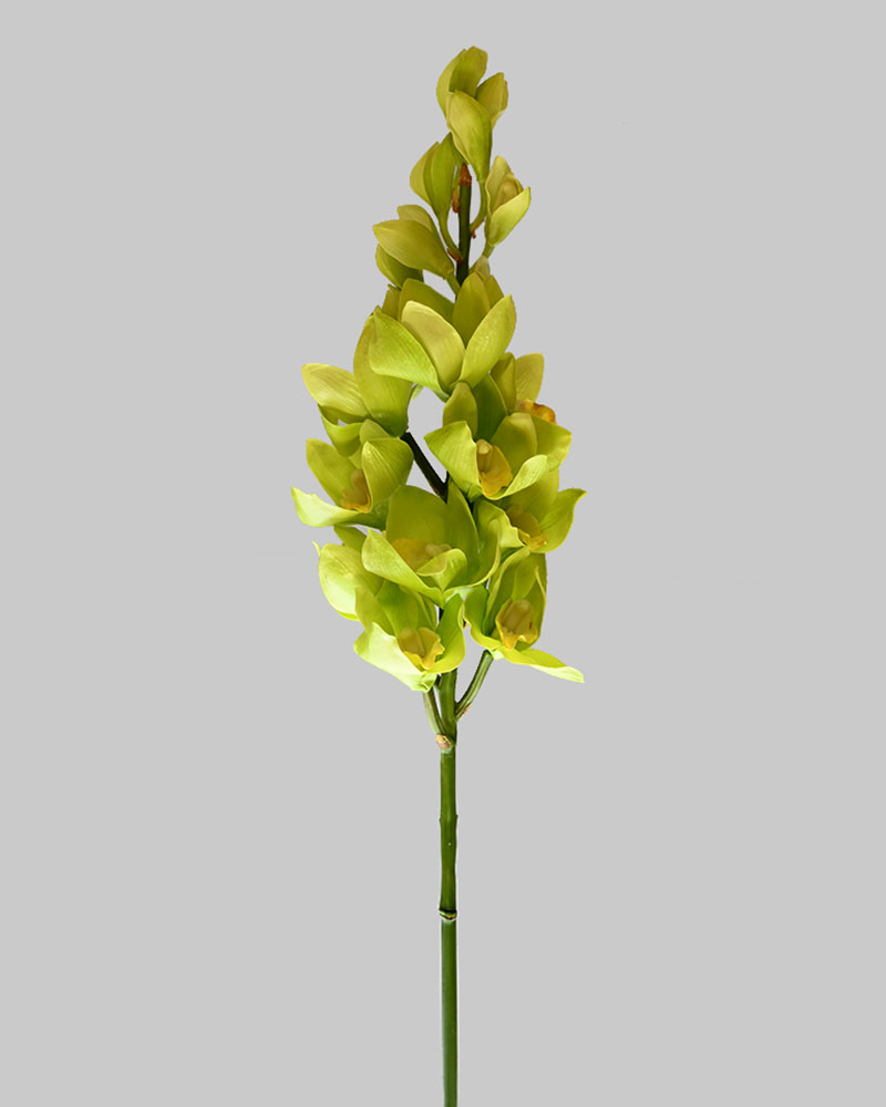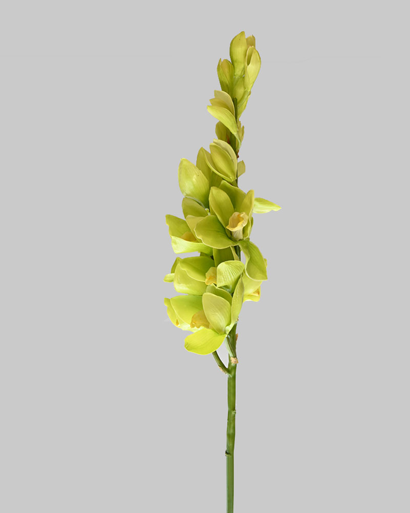 The Cymbidium Orchid is a truly stunning flower, known for its colourful and intriguing blooms that add a luxurious feel to any room. This stem features light green flowers with a subtle touch of yellow and a natural finish, making them look and feel remarkably lifelike. Perfect for enhancing any floral arrangement or home décor with timeless elegance.