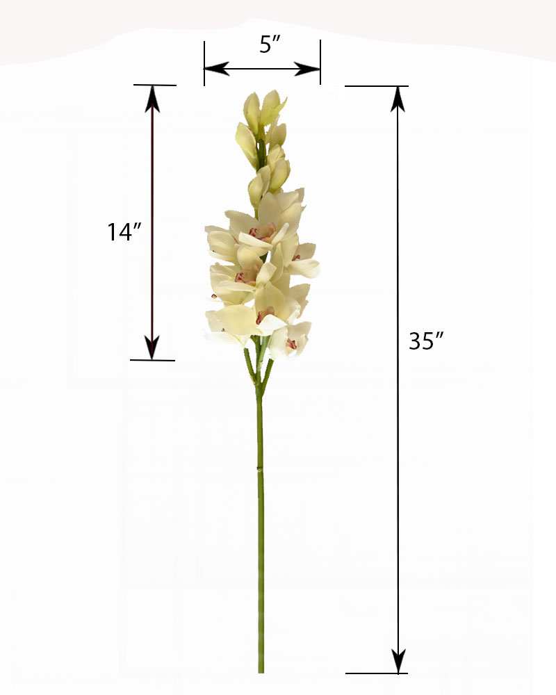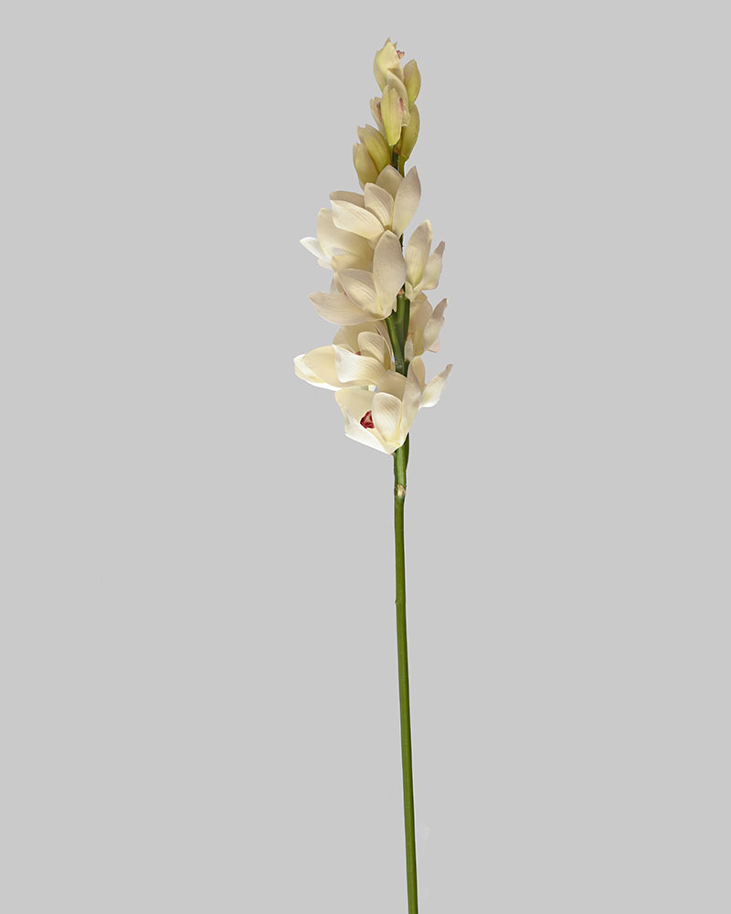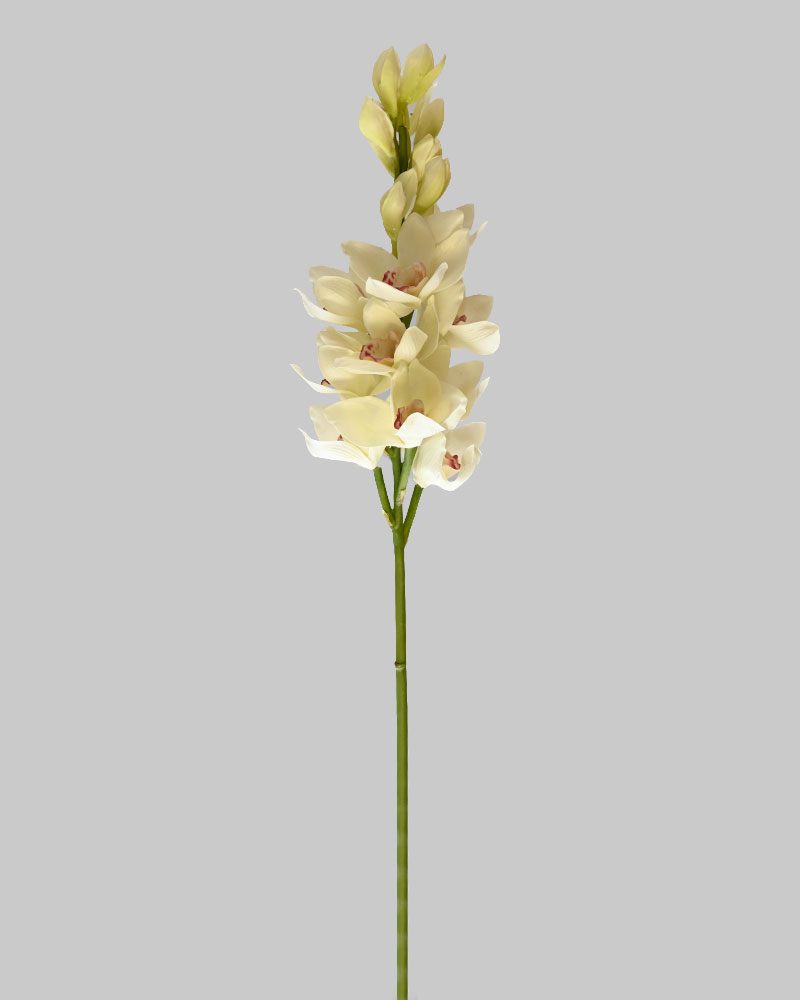 The Cymbidium Orchid is a truly stunning flower, known for its colourful and intriguing blooms that bring a luxurious feel to any room. This stem features soft white flowers with delicate pink touches, crafted with a natural finish that makes them look and feel remarkably lifelike. Perfect for adding elegance and charm to any home arrangement.