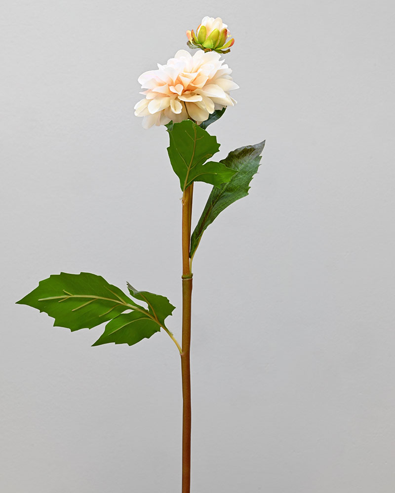 With one full bloom and a gently opening bud, this Dahlia stem strikes the perfect balance. Its warm light peach hue, combined with a natural-touch finish, gives the petals a delicate, soft feel. Simple yet elegant, this flower is an ideal addition to any arrangement, bringing subtle warmth and timeless beauty.
