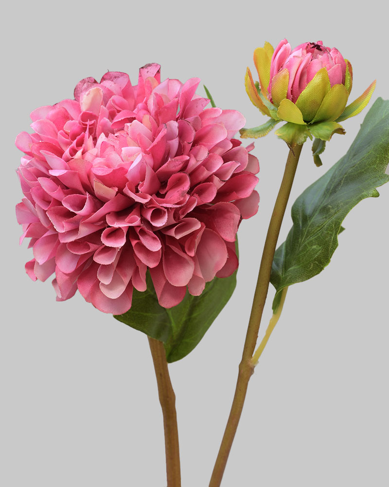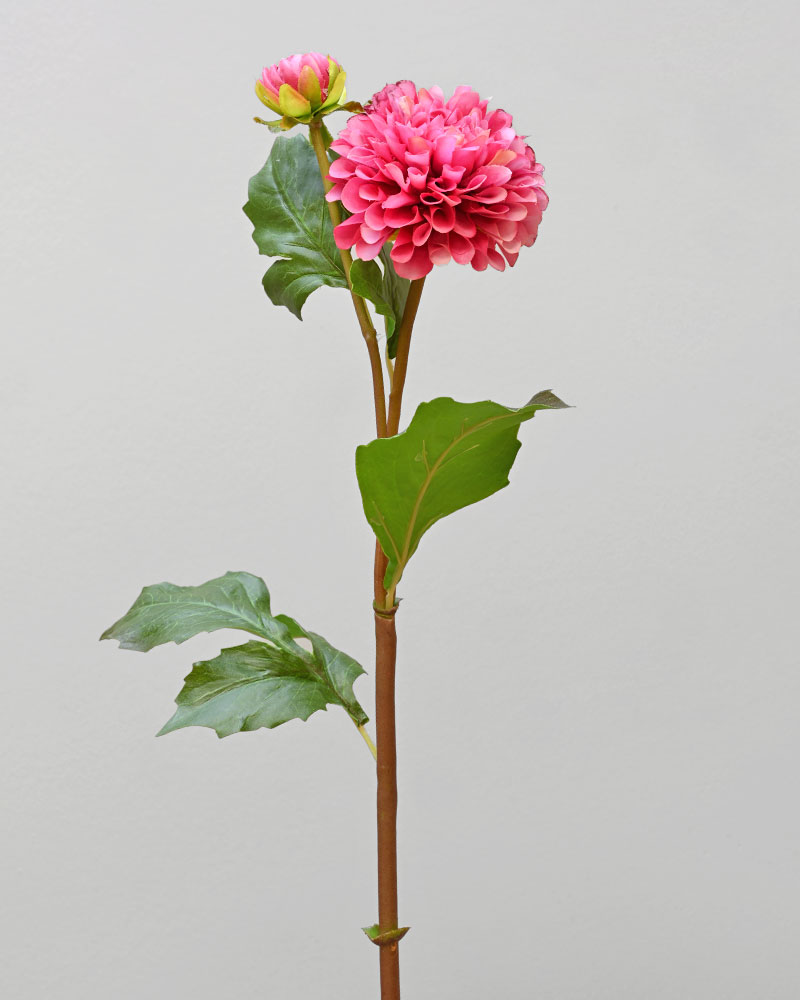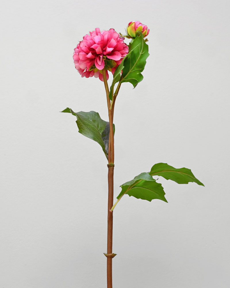With one main flower and a gently opening bud, this Button Dahlia stem strikes the perfect balance. The warm deep pink colour makes it a stunning addition to any arrangement, adding a rich pop of colour and charm.