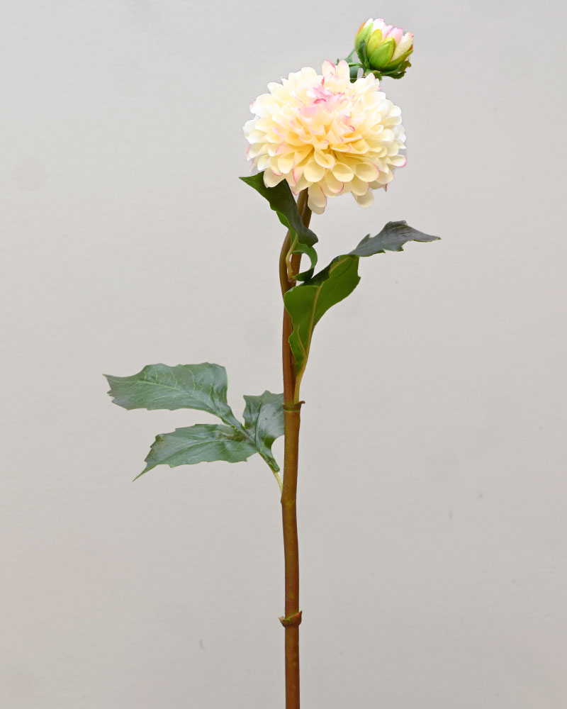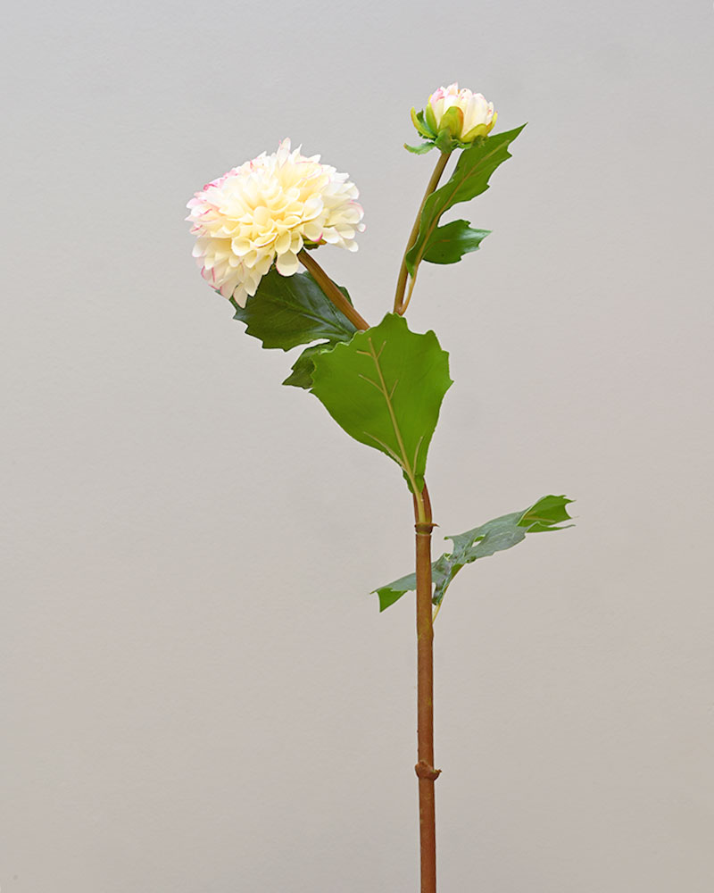 With one main flower and a gently opening bud, this Button Dahlia stem strikes the perfect balance. The warm white petals, subtly touched with hints of pink throughout, make it a charming and elegant addition to any arrangement.