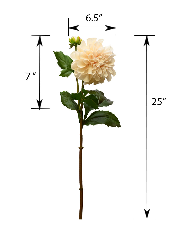With one main flower and a gently opening bud, this Dahlia stem is a true stunner. Its warm beige tones, paired with a natural-touch feel, give it a soft, sophisticated look that blends beautifully into any arrangement. A perfect stem for adding subtle charm and elegance.