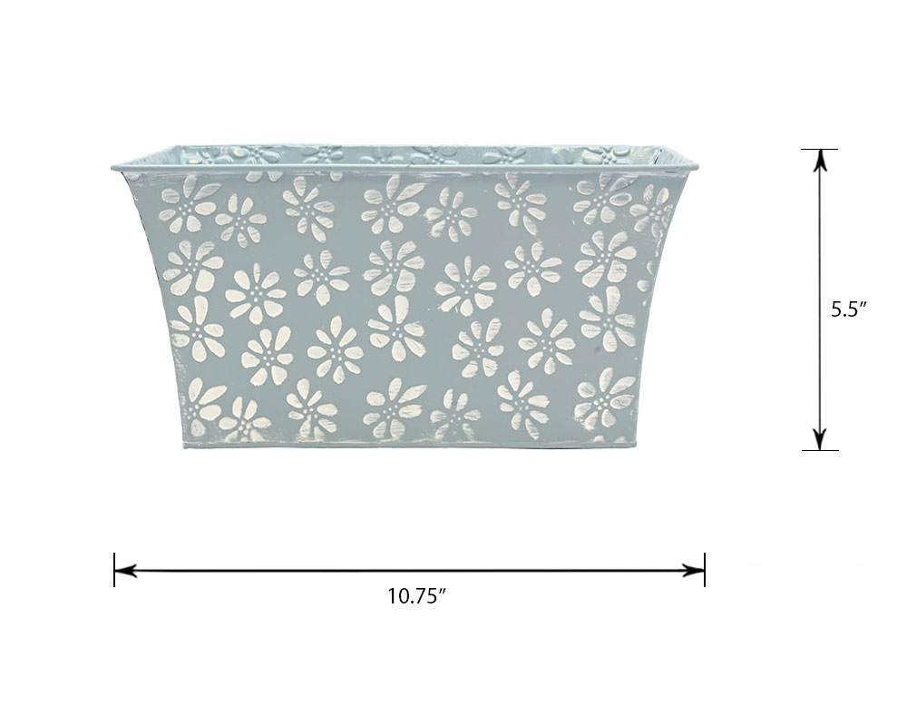 With a soft blue-coloured base, a charming white daisy pattern, and scalloped tapered sides, this container is a delightful choice for a spring-inspired arrangement. Its perfectly sized design and gentle colour palette make it a versatile accent for any space. Whether filled with faux florals, seasonal décor, or displayed on its own, this container is full of potential—just waiting for a touch of creativity to bring it to life.