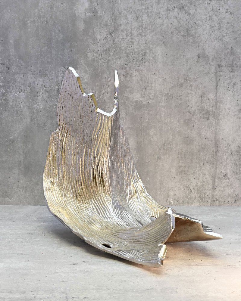 Now for something completely different! This unique silver metal sculpture brings a modern, elegant touch to any room in the house. With its sleek, minimalist design, it effortlessly enhances any tabletop, making it the perfect statement piece to elevate your décor.