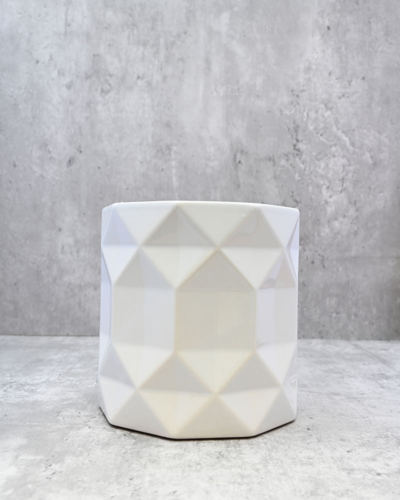 Uniquely shaped and beautifully embossed, this planter is perfect for any plant or floral arrangement in need of something a little different. Finished in a soft white gloss, it strikes the perfect balance—eye-catching yet subtle enough to make an elegant, understated statement in any space.