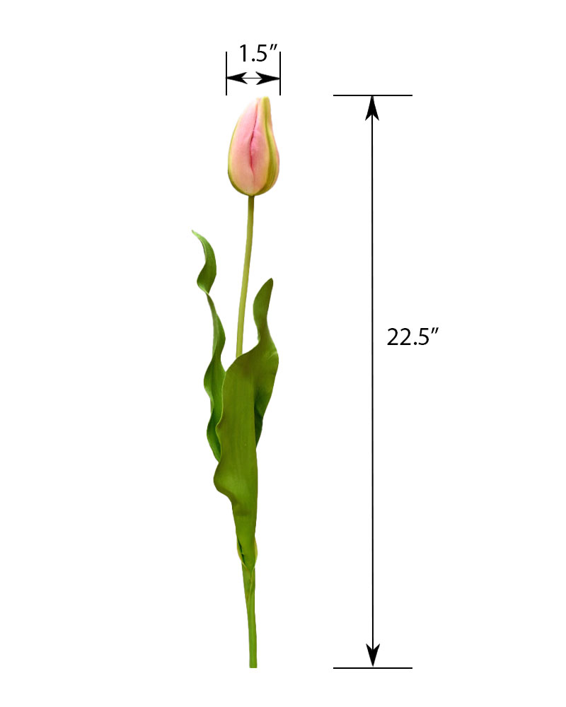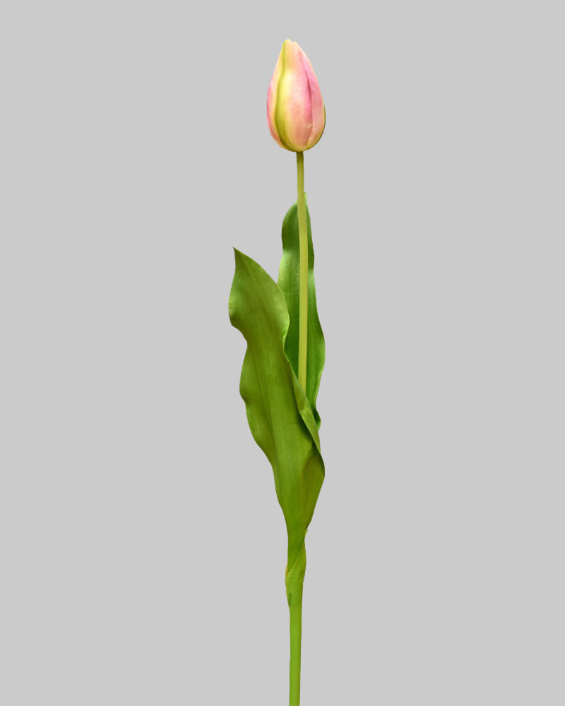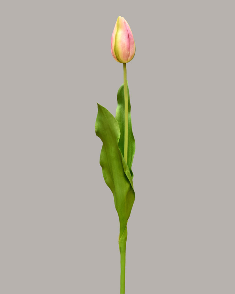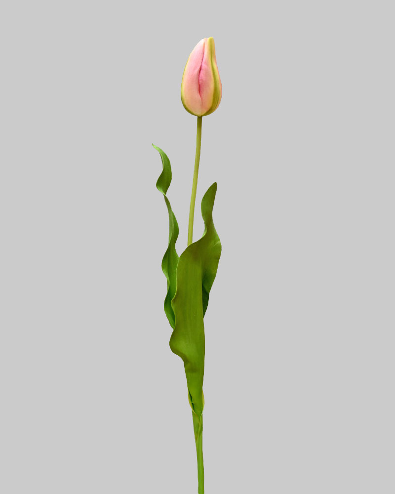 Tulips are a true symbol of spring, bringing fresh life and colour after winter’s rest. This closed Dutch Tulip features soft pink petals with gentle green and yellow hues, creating a naturally elegant look. Perched on a long green stem, it adds a delicate pop of colour and a fresh, seasonal feel to any vase or floral arrangement.