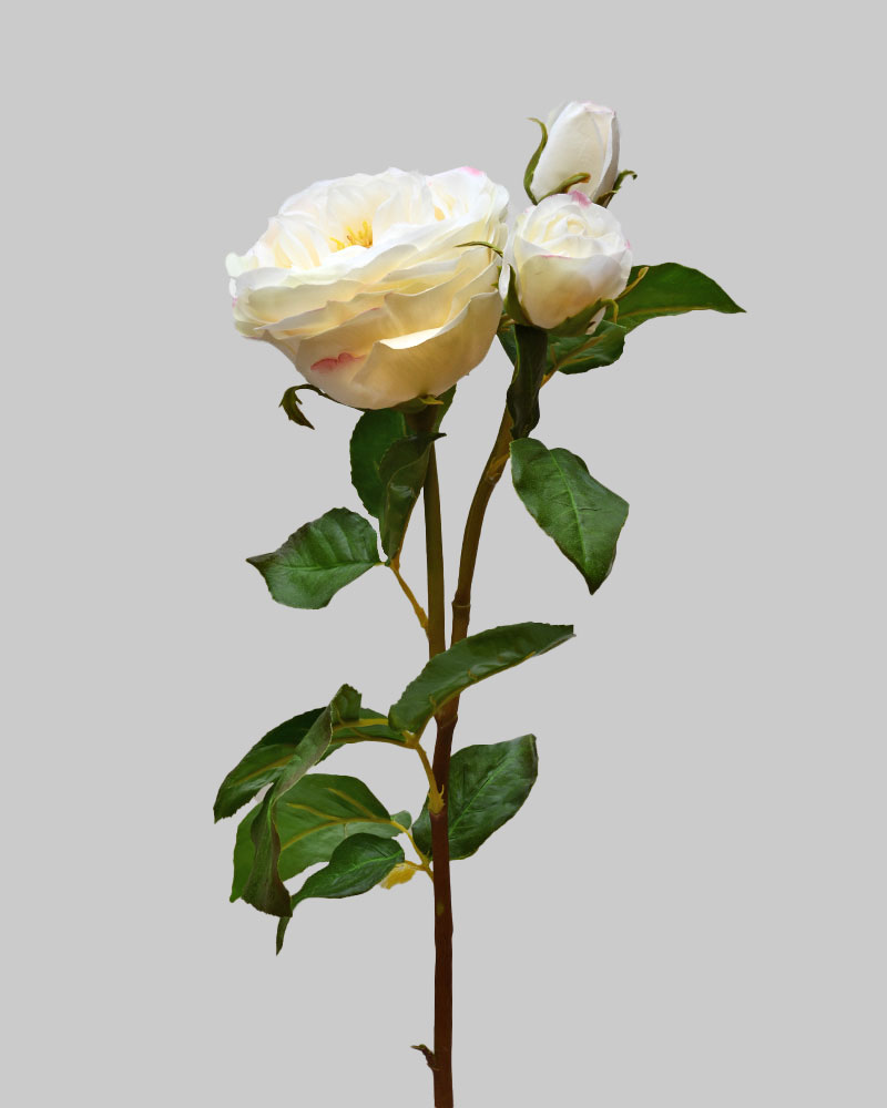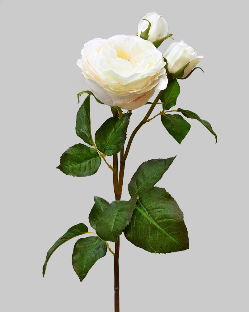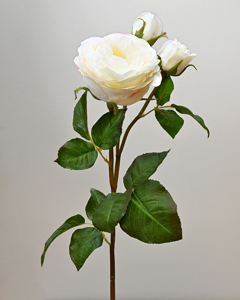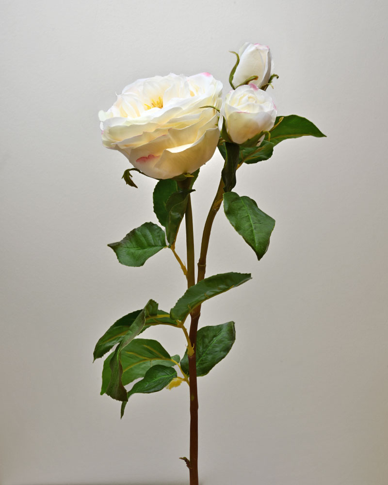With one prominent bloom and two gently opening buds, this rose offers a soft yet stately presence, perfect for any floral arrangement. Its delicate petals radiate gracefully from the open centre, and the warm champagne colour adds a subtle elegance that enhances any setting.