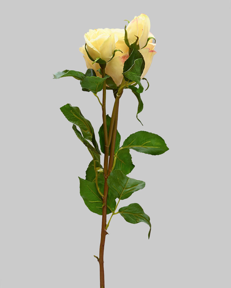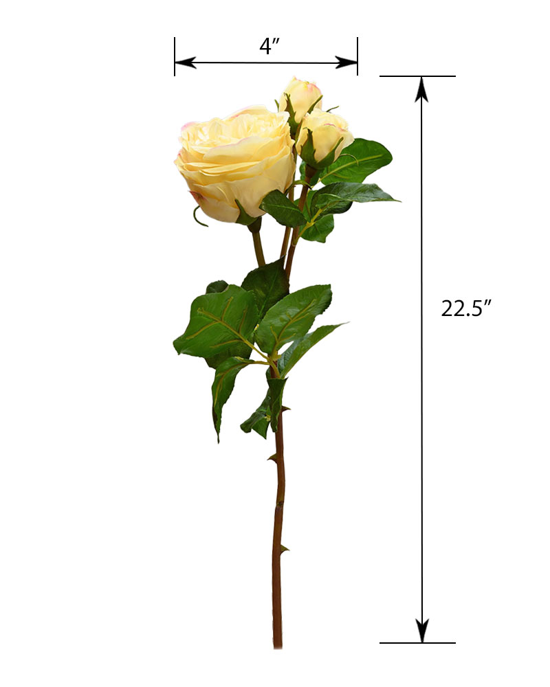 With one prominent bloom and two gently opening buds, this rose offers a soft yet stately presence, perfect for any floral arrangement. Its delicate petals radiate gracefully from the open centre, and the soft yellow colour adds a warm, timeless elegance that elevates any setting.