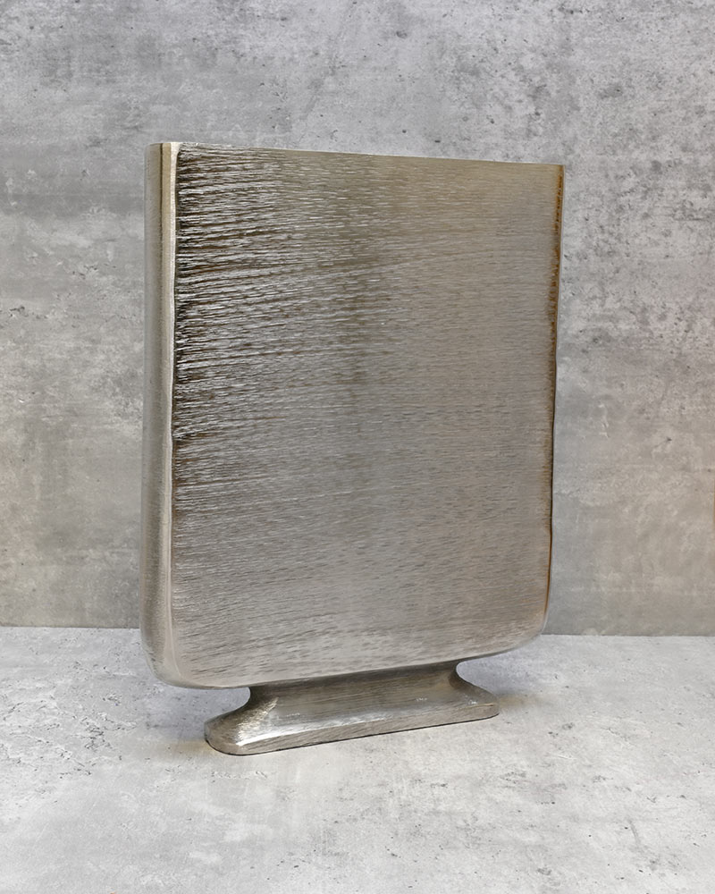 Another striking example of style and form coming together to create a truly standout container. Featuring a flat face and a polished pewter finish, it adds a sleek, sophisticated touch to any space. Available in additional sizes, it can be paired with its counterpart for a cohesive look or filled with dramatic florals to make a bold statement. However you style it, this container is sure to draw attention.