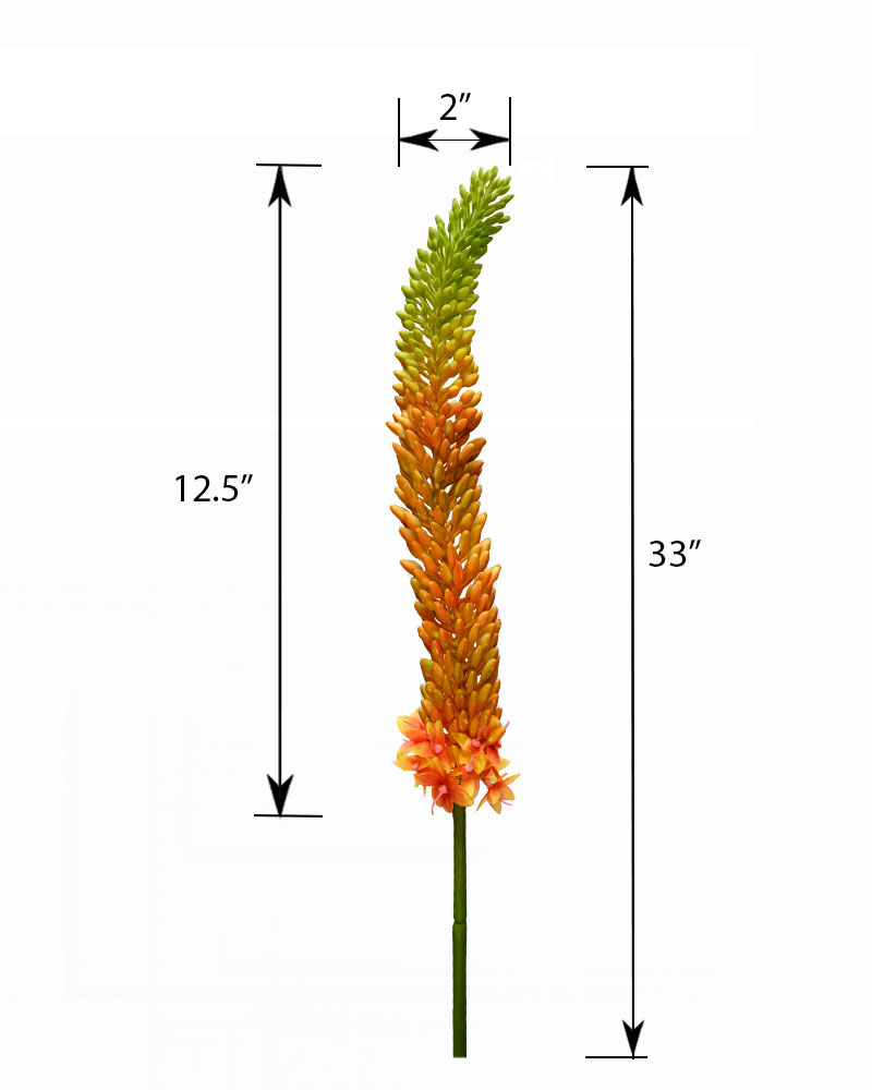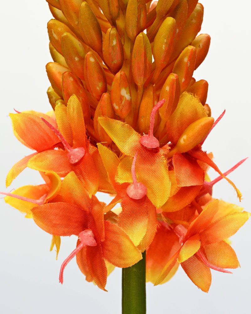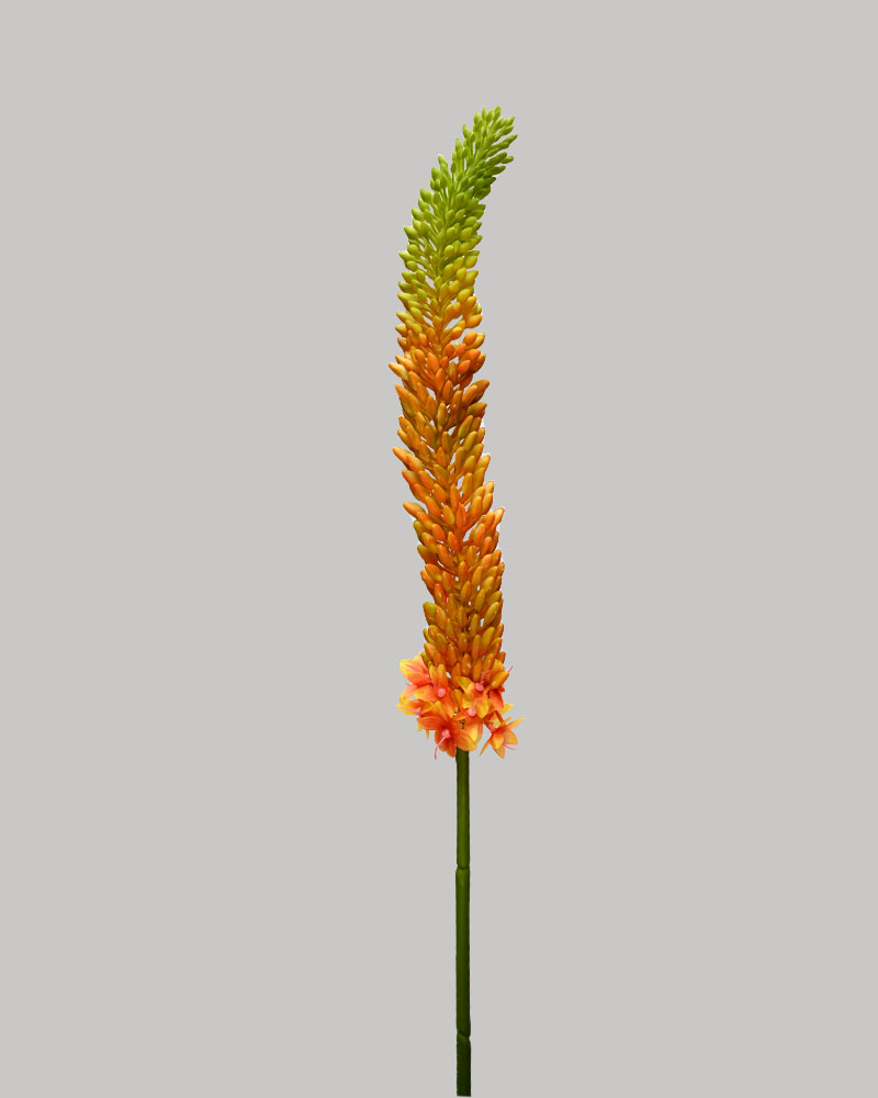 A truly stunning flower, full of colour, height, and style. The Foxtail Lily bursts with vibrant hues and is a beautiful sight when in full bloom. Unlike many flowers, it blooms starting at the base and gradually moves up the stem, creating a unique and captivating display. If you’re after height and bold colour, this is the perfect choice. This particular stem features a long stalk filled with buds just waiting to open, glowing with shades of orange and green. With flowers beginning to bloom at the base, it makes an exceptional addition to any arrangement. Bring this special and unique flower into your space and watch it make a stunning statement.