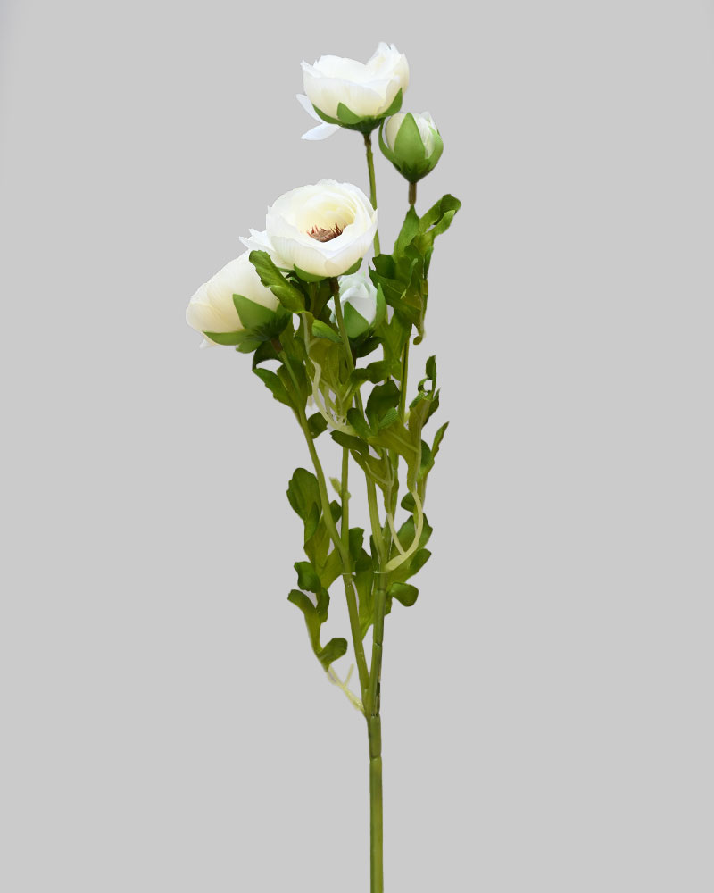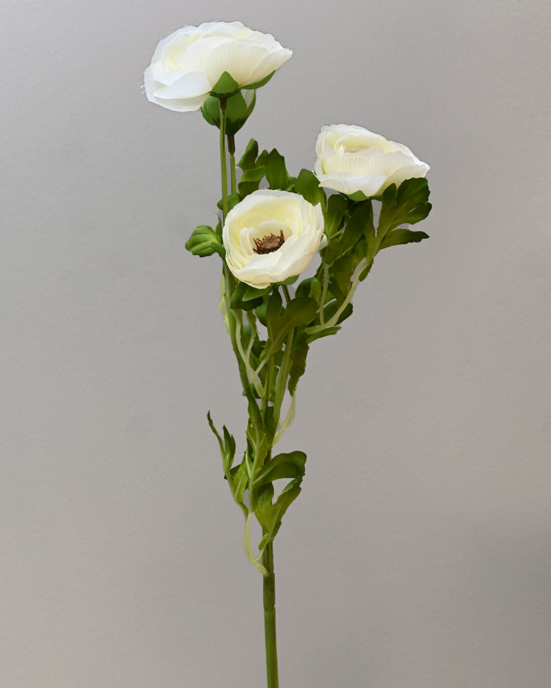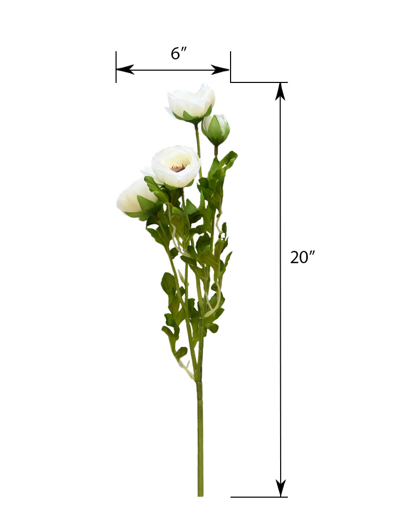 The Ranunculus is one of nature’s most stunning flowers. Layers of delicate petals form beautifully intricate blooms that add timeless elegance to any arrangement. This stem features three cream-colored blooms, offering depth and a lifelike presence. A true standout, it brings subtle charm and classic beauty to any display.