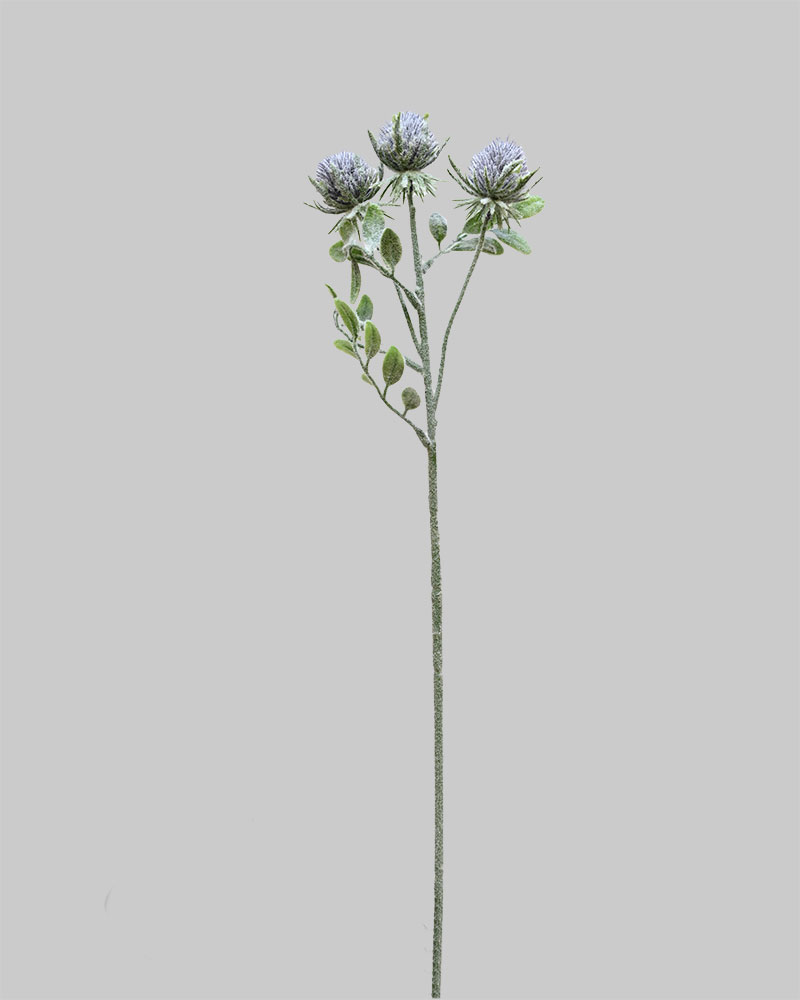 This garden thistle features a striking purple colour palette paired with a heavily frosted finish, creating a unique and versatile bloom. Full of texture and character, it pairs beautifully with a variety of flowers—offering endless possibilities for stunning arrangements.
