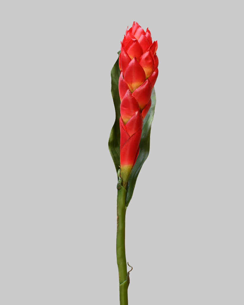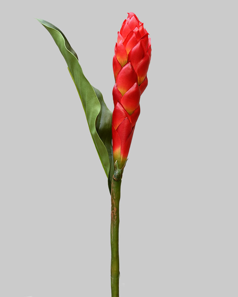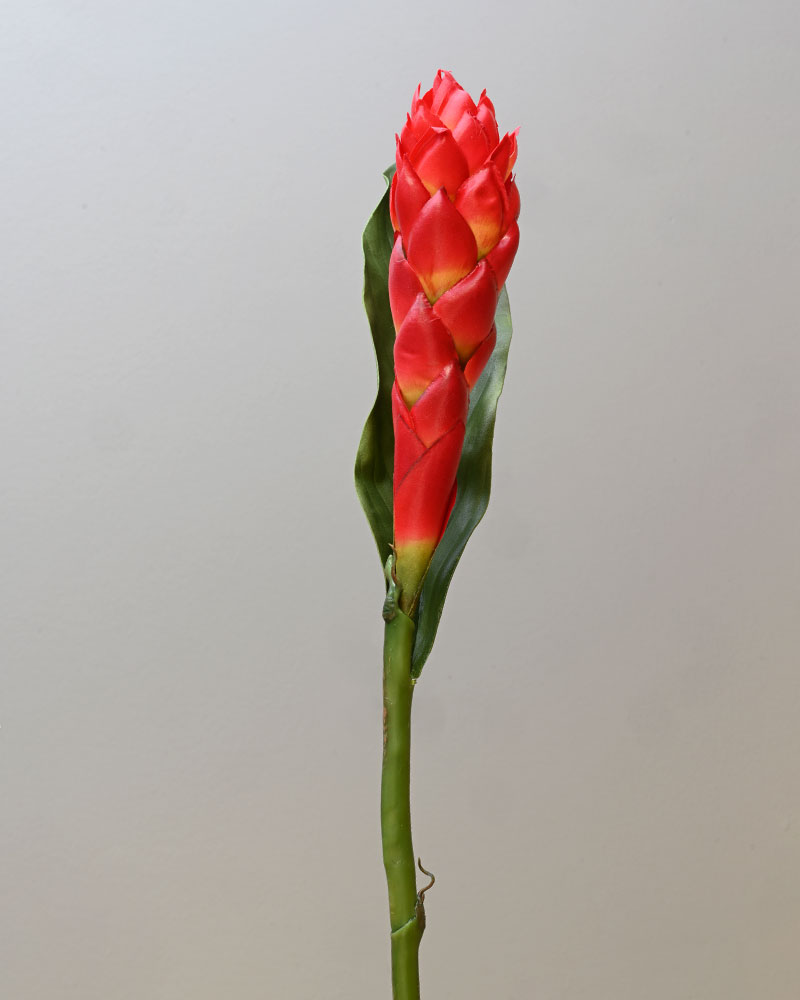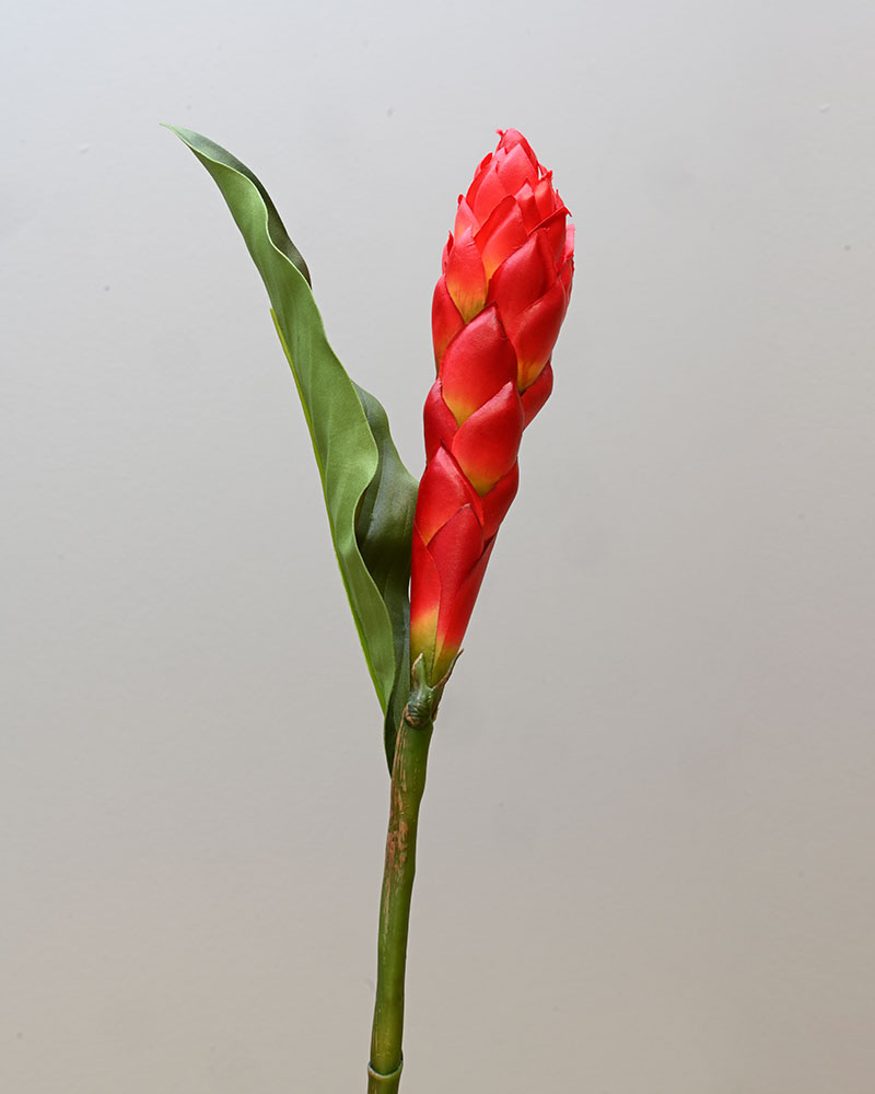 The Ginger Cone is a striking and unique tropical flower that brings instant flair to any arrangement. Featuring lush red tones with subtle hints of yellow, a firm upright stem, and a vibrant green leaf for contrast, it adds bold structure and an exotic touch. Perfect for elevating your design with a splash of tropical charm.