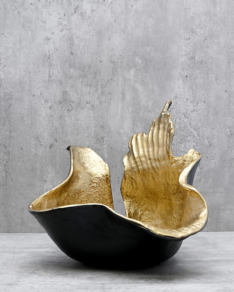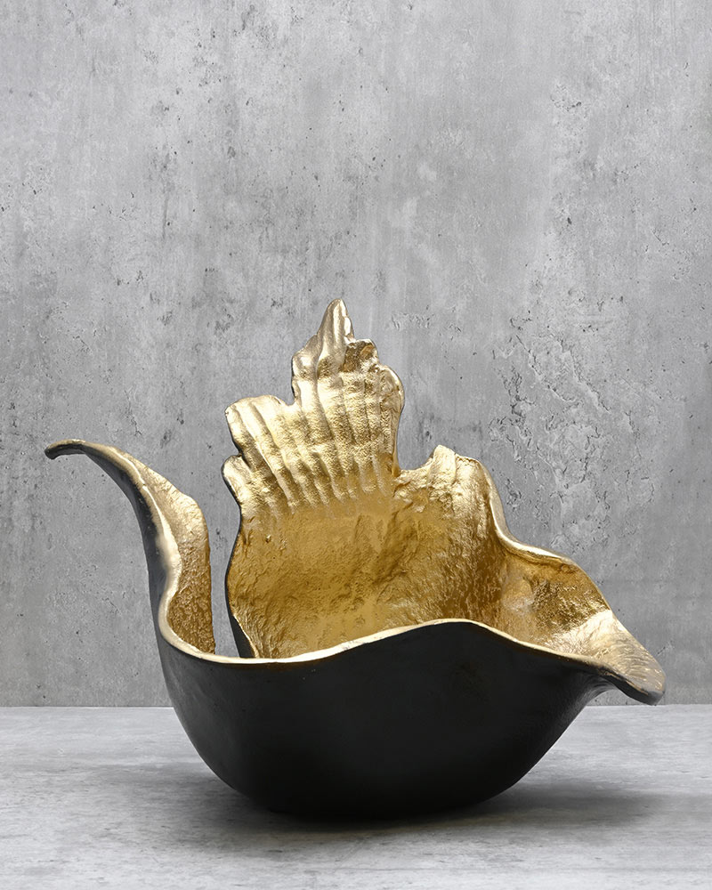 If stunning and unique are what you’re after, this piece is the perfect choice. Designed to evoke the graceful flicker of a flame, this black and gold sculpture radiates elegance and modern charm. Its sleek finish and metallic accents catch the light beautifully, creating a captivating focal point. Whether displayed solo as a bold accent or paired with flowers and other decorative elements, this sculpture adds a dramatic and sophisticated touch to any room in your home.