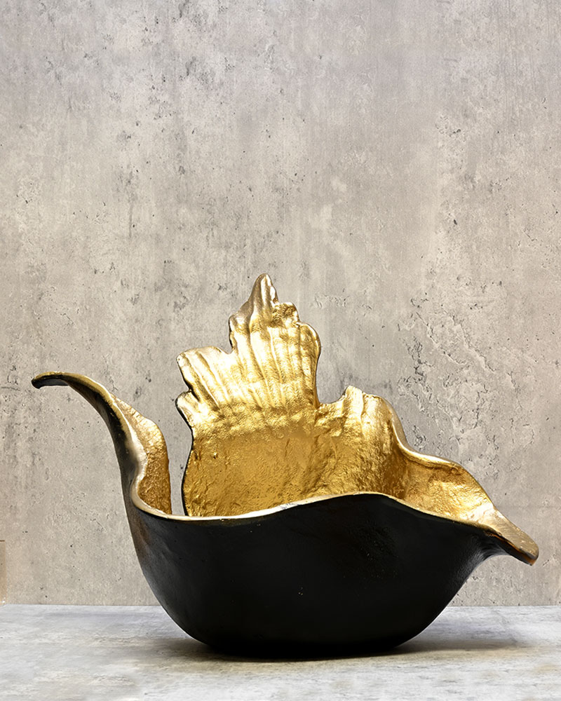 If stunning and unique are what you’re looking for, this piece is the one. Evoking the flicker of a flame, this gold and black aluminium sculpture is truly captivating. Perfect as a standalone accent or paired with flowers and other decorative items, it creates a dramatic and striking focal point in any room of the home.