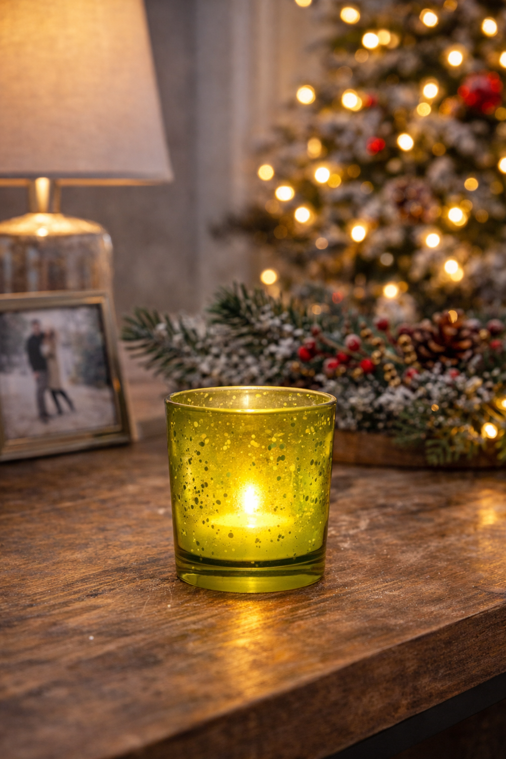With its speckled green glass, this tea light adds a charming and festive touch to your décor, making it especially perfect for the holiday season. The unique texture catches the light beautifully, creating a warm and inviting glow that enhances any space. Though compact in size, this tea light makes a big statement when placed thoughtfully—whether on a mantle, table, or shelf. Its versatile design also makes it ideal for year-round use, adding a subtle hint of colour and elegance wherever it’s displayed.