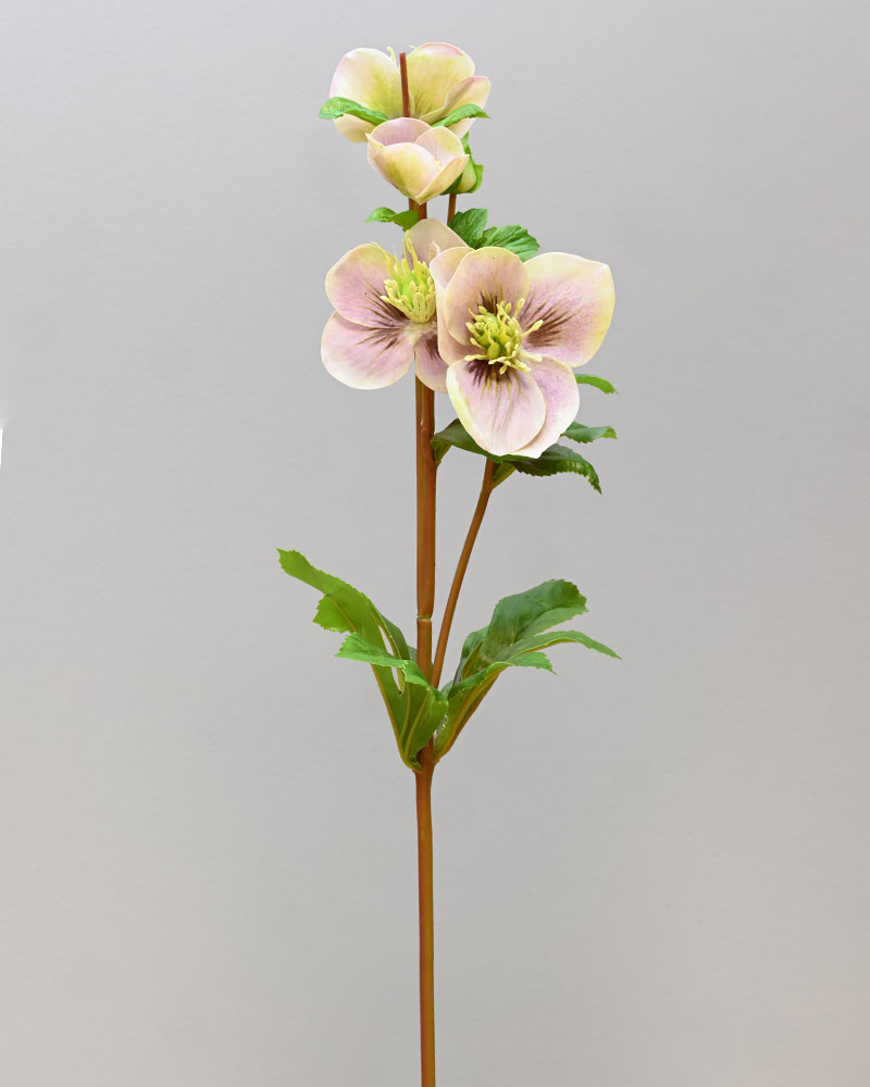The Hellebores is a simple yet elegant flower. This stem features multiple soft lavender-coloured blooms stacked along a sturdy stem. The petals have a soft texture with natural shading that adds depth and interest. It’s a great choice for adding subtle beauty and character to any arrangement.