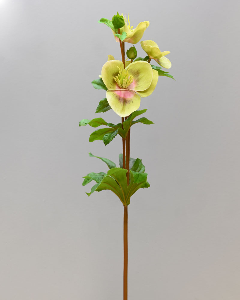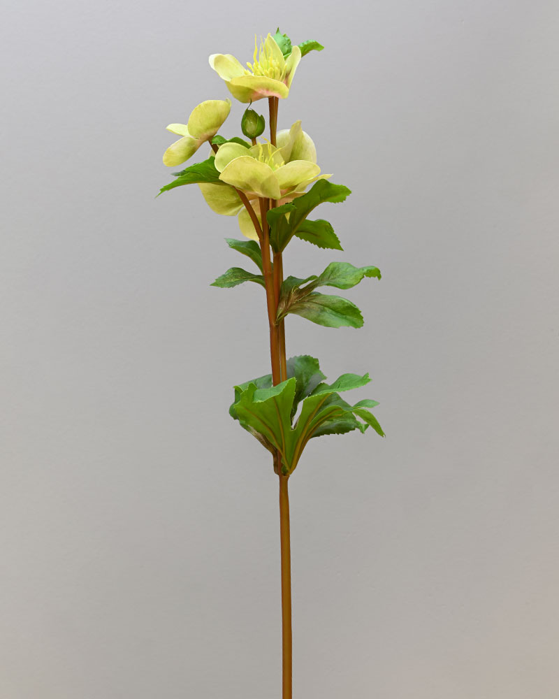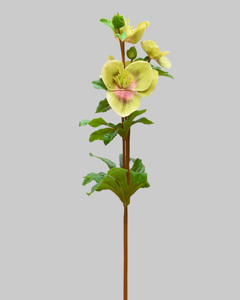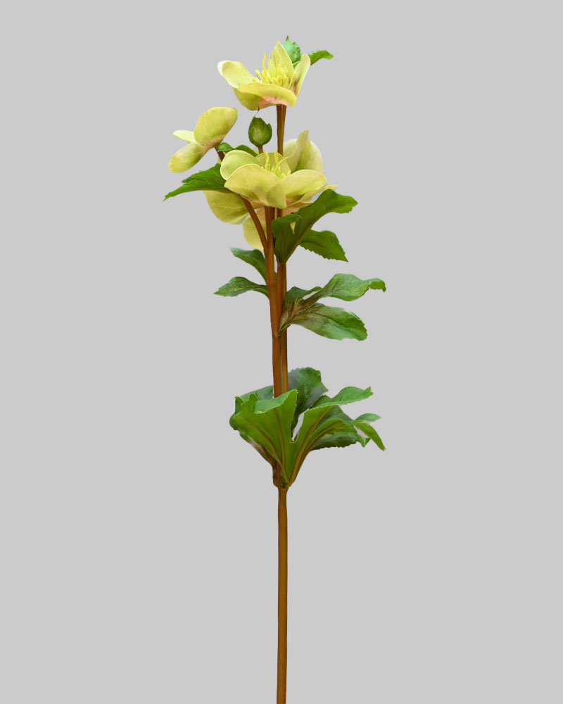 The Hellebores is a simple yet elegant flower. This stem features multiple light green-coloured blooms stacked along a sturdy stem. The petals have a soft texture with natural shading that adds depth and interest. It’s a great choice for adding subtle beauty and character to any arrangement.