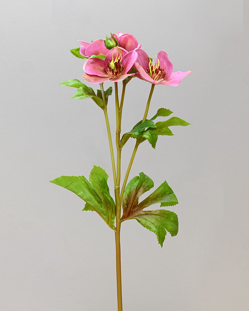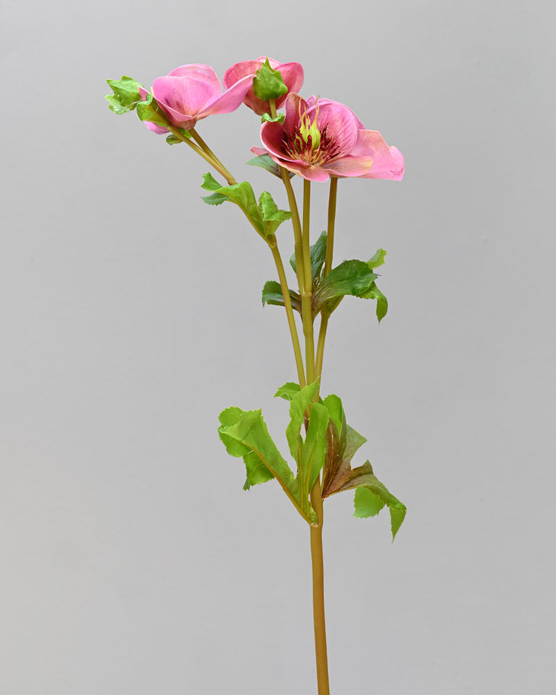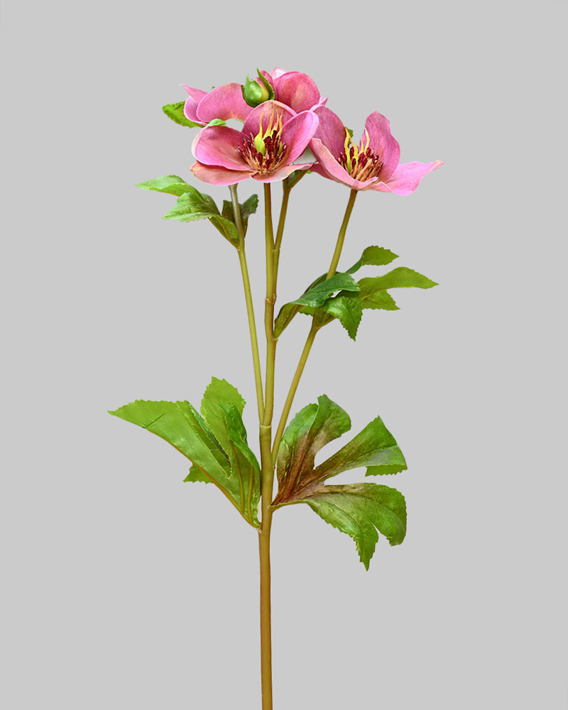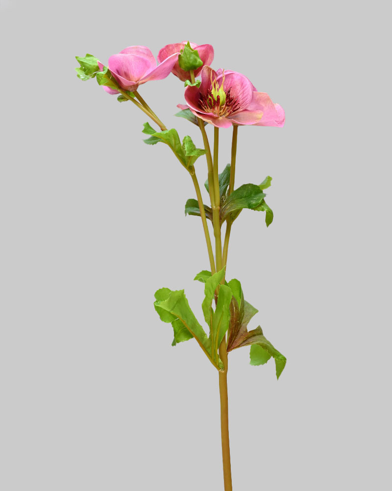 The Hellebores is a simple yet elegant flower. This stem features multiple mauve-coloured blooms stacked along a sturdy stem. The petals have a soft texture with natural shading that adds depth and interest. It’s a great choice for adding subtle beauty and character to any arrangement.