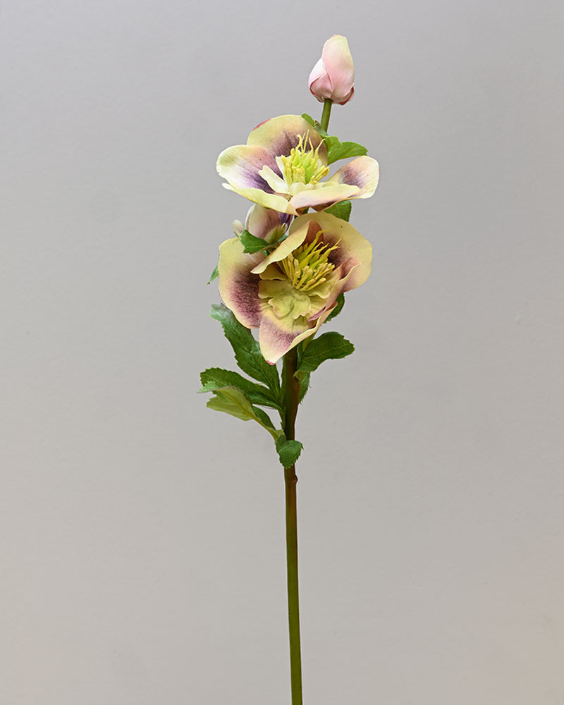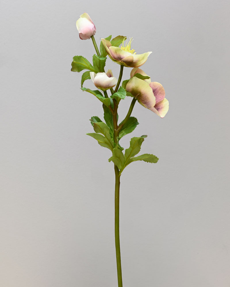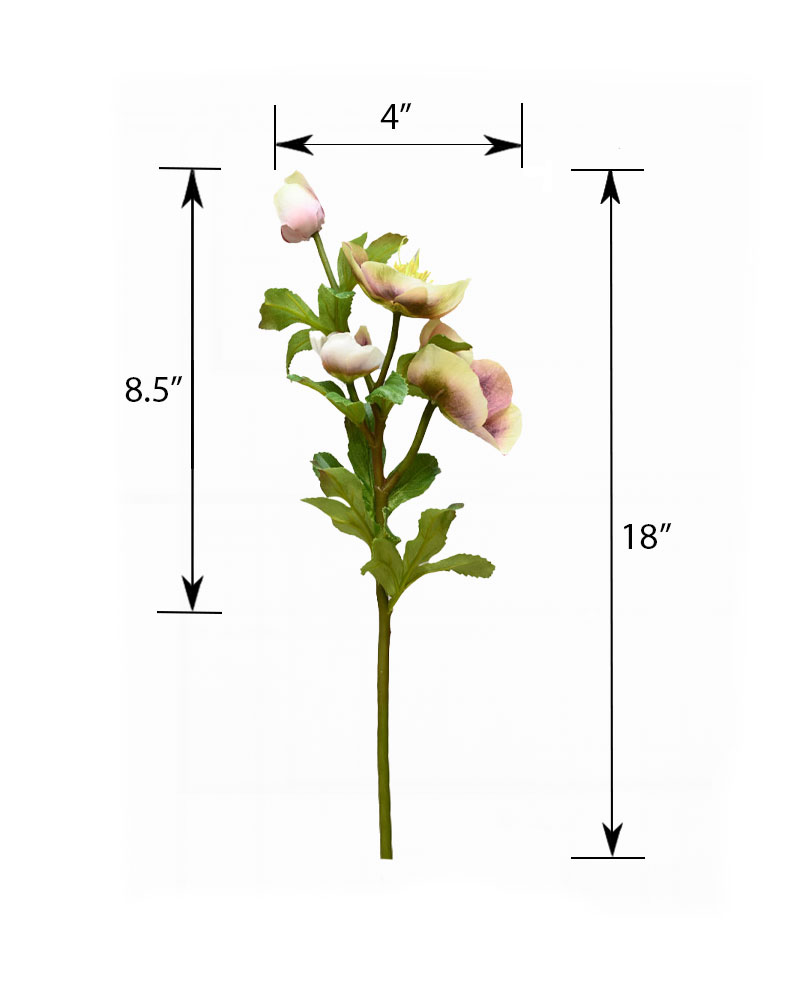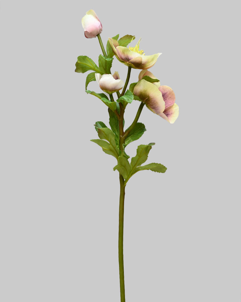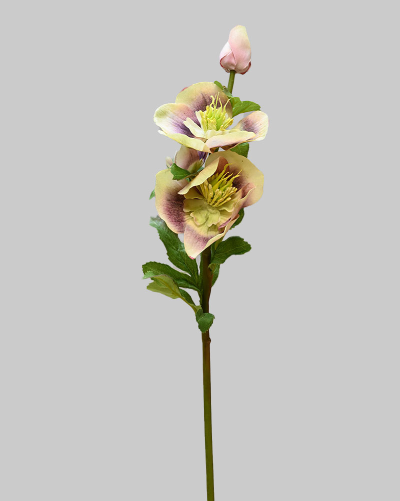 The Hellebores is a graceful and elegant flower, featuring soft lavender blooms delicately contrasted by gentle green centres and edges. Each flower is crafted with a natural touch to capture the subtle texture and lifelike depth of real petals. Multiple blossoms are beautifully arranged along a single sturdy stem, creating a layered and dimensional effect. This stem is perfect for adding a serene and sophisticated splash of colour to any floral arrangement.
