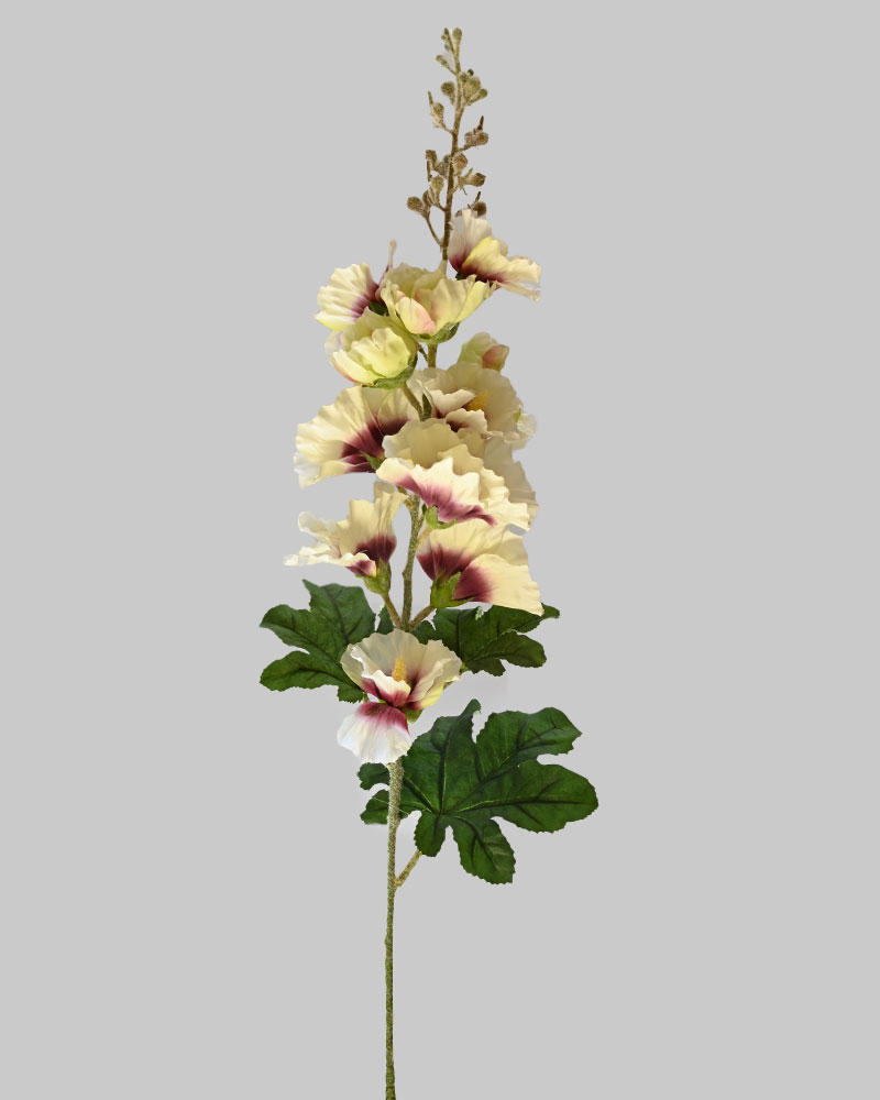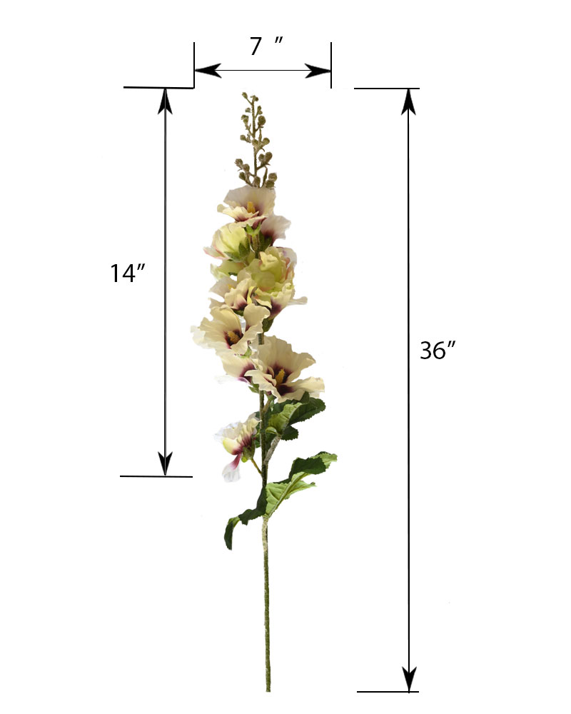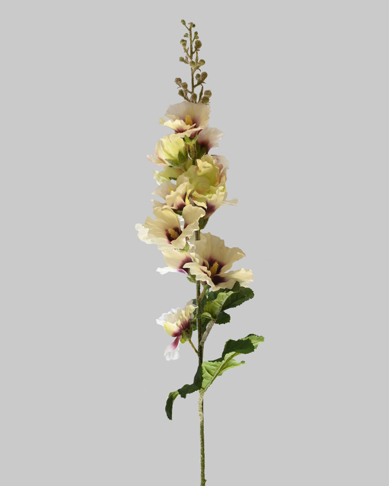 Add height, colour, and classic charm to your arrangements with this stunning artificial Hollyhock stem. Standing an impressive 3 feet tall, it features beautifully detailed white and mauve blooms inspired by nature. Perfect for creating dramatic vertical lines and adding soft, romantic hues to any floral display, this stem brings the beauty of summer into your space—no watering required.