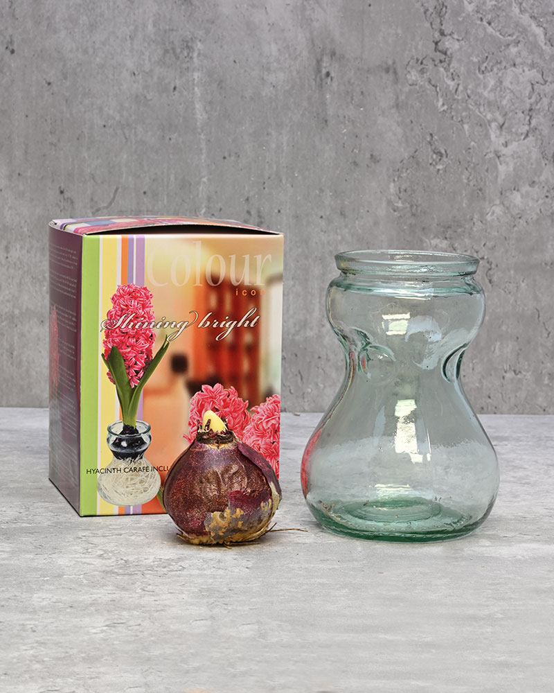 Watch as roots form in the clear glass vase, followed by the gradual emergence of a vibrant bloom. Within a few weeks, you'll be rewarded with sweet fragrance and bursts of colour—perfect for brightening up your home or workspace during the winter and early spring.