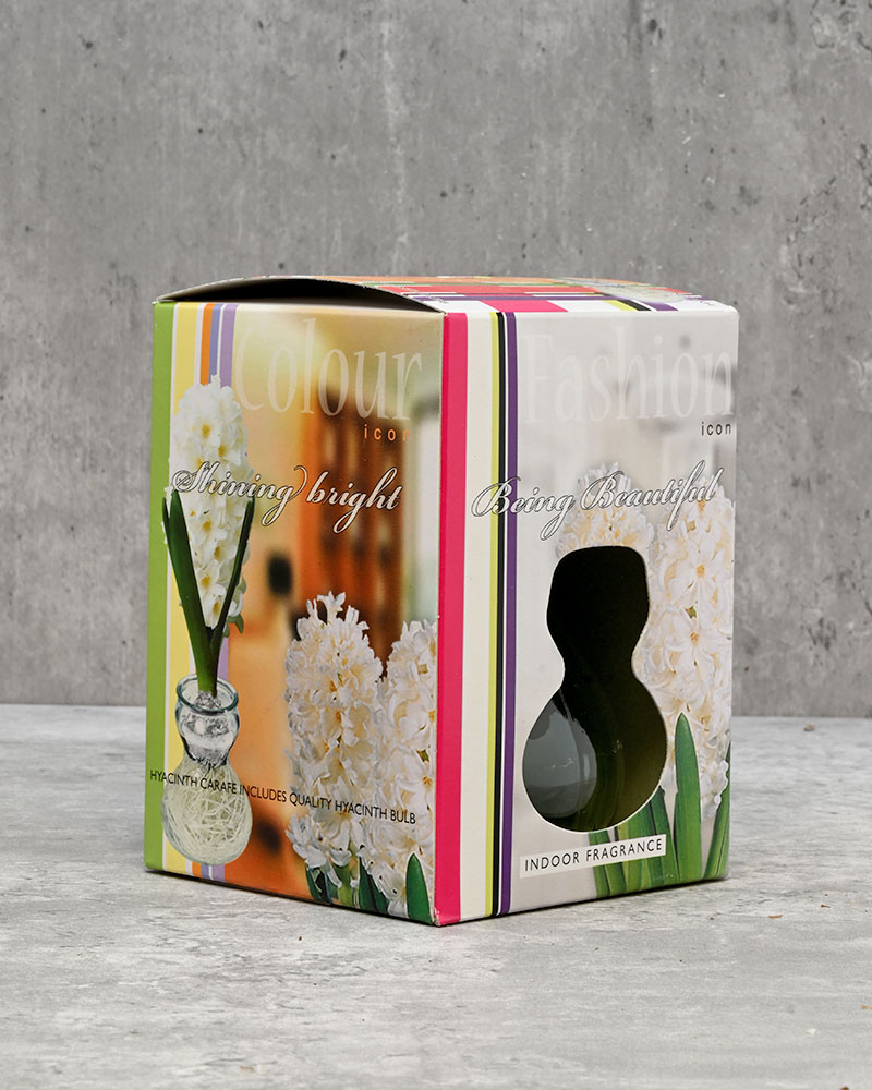 Watch as roots form in the clear glass vase, followed by the gradual emergence of a vibrant bloom. Within a few weeks, you'll be rewarded with sweet fragrance and bursts of colour—perfect for brightening up your home or workspace during the winter and early spring.