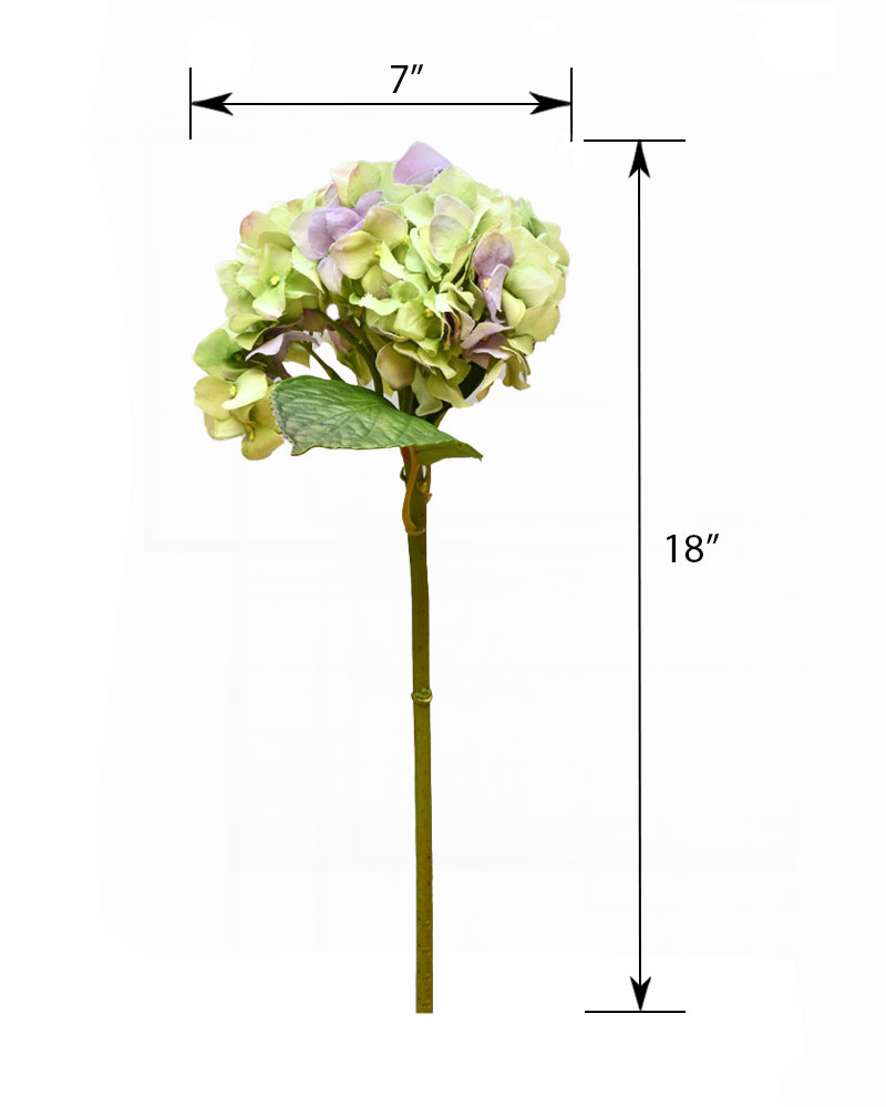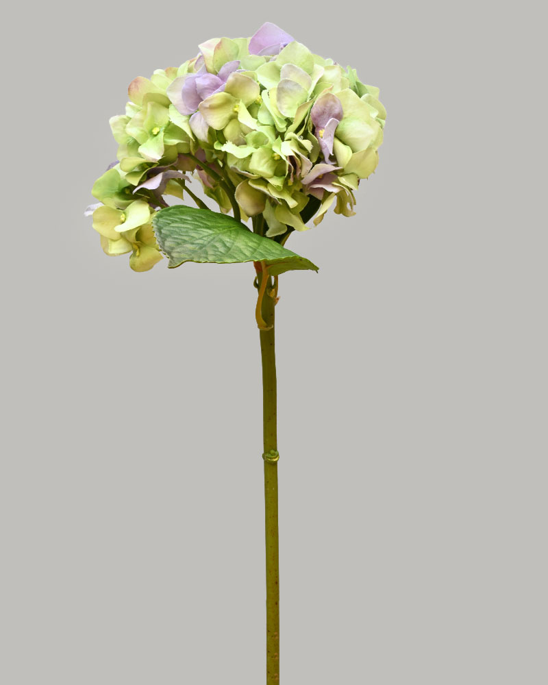 Featuring a large, lush bloom in soft green and lavender tones, this hydrangea stem adds a unique and elegant touch to any floral arrangement. Crafted with a natural touch, it offers lifelike detail and vibrant colours that bring the beauty of a summer garden indoors. Ideal for use alone or paired with other blooms, it effortlessly elevates your décor with style and sophistication