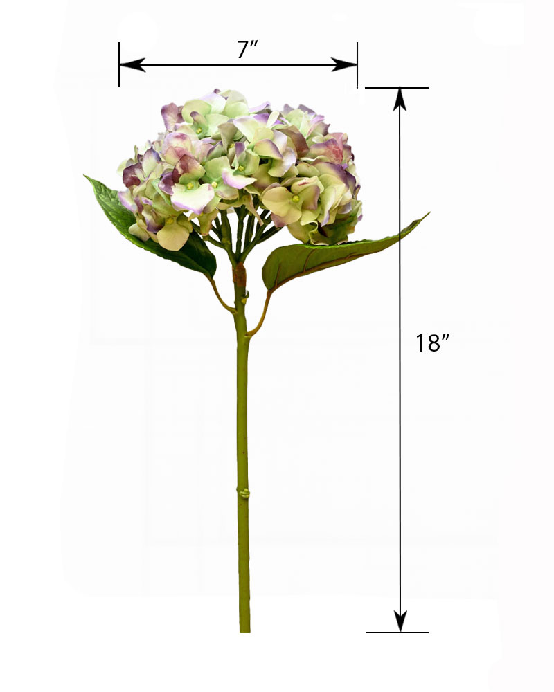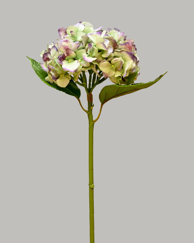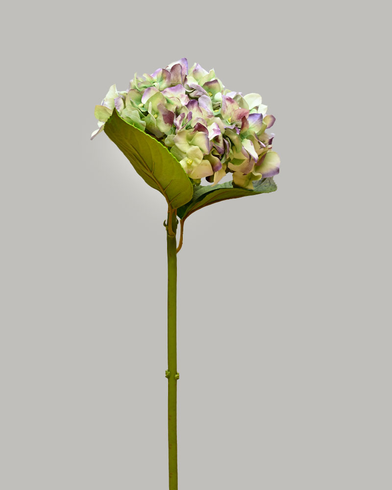 Featuring a large, lush bloom in soft green and purple tones, this hydrangea stem adds a unique and elegant touch to any floral arrangement. Crafted with a natural touch, it offers lifelike detail and vibrant colours that bring the beauty of a summer garden indoors. Ideal for use alone or paired with other blooms, it effortlessly elevates your décor with style and sophistication