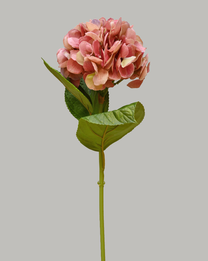 This artificial hydrangea stem showcases a large, lush bloom in soft burgundy and cream shades, adding a gentle yet striking pop of colour. Crafted with a natural touch, it brings lifelike beauty and elegance to any floral arrangement. Ideal for use alone or paired with complementary flowers, it effortlessly enhances your décor with timeless charm.