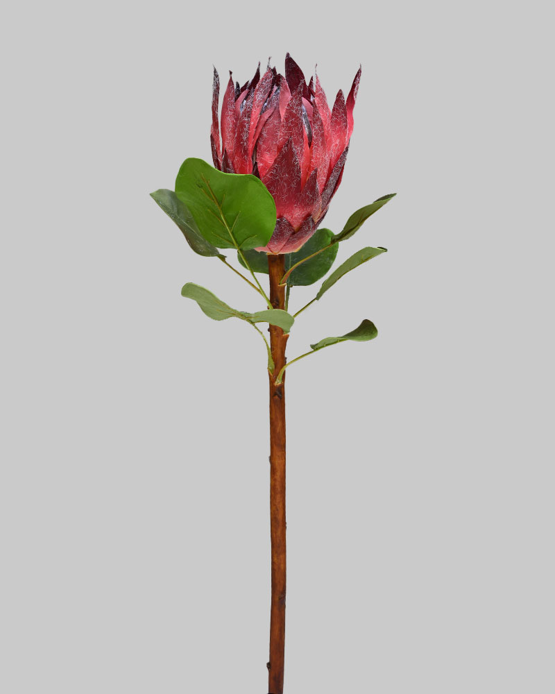The Protea is a truly unique and spectacular flower. Few can match its exotic beauty, intricate details, and bold character. With its large flower head and rich burgundy hue, this Protea instantly draws the eye—becoming the focal point of any arrangement. If you're looking to add something truly distinctive to your home, few flowers make a statement quite like the Protea.