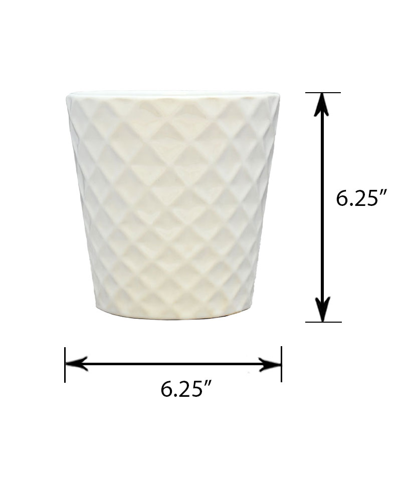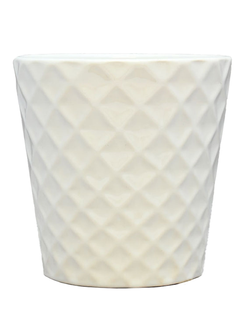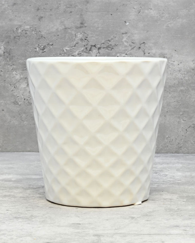 Featuring a diamond checkered pattern and a soft white gloss finish, this container is perfect for any arrangement, plant, or flower. Subtle yet classy, its timeless design offers endless versatility for any space or style.