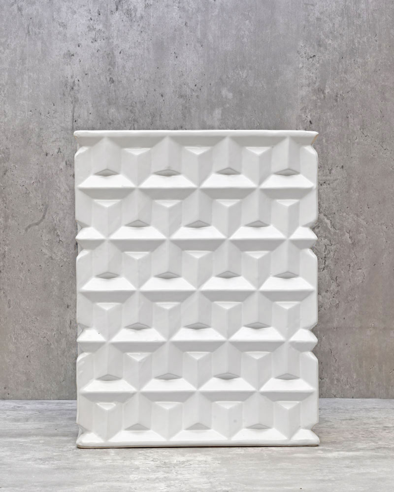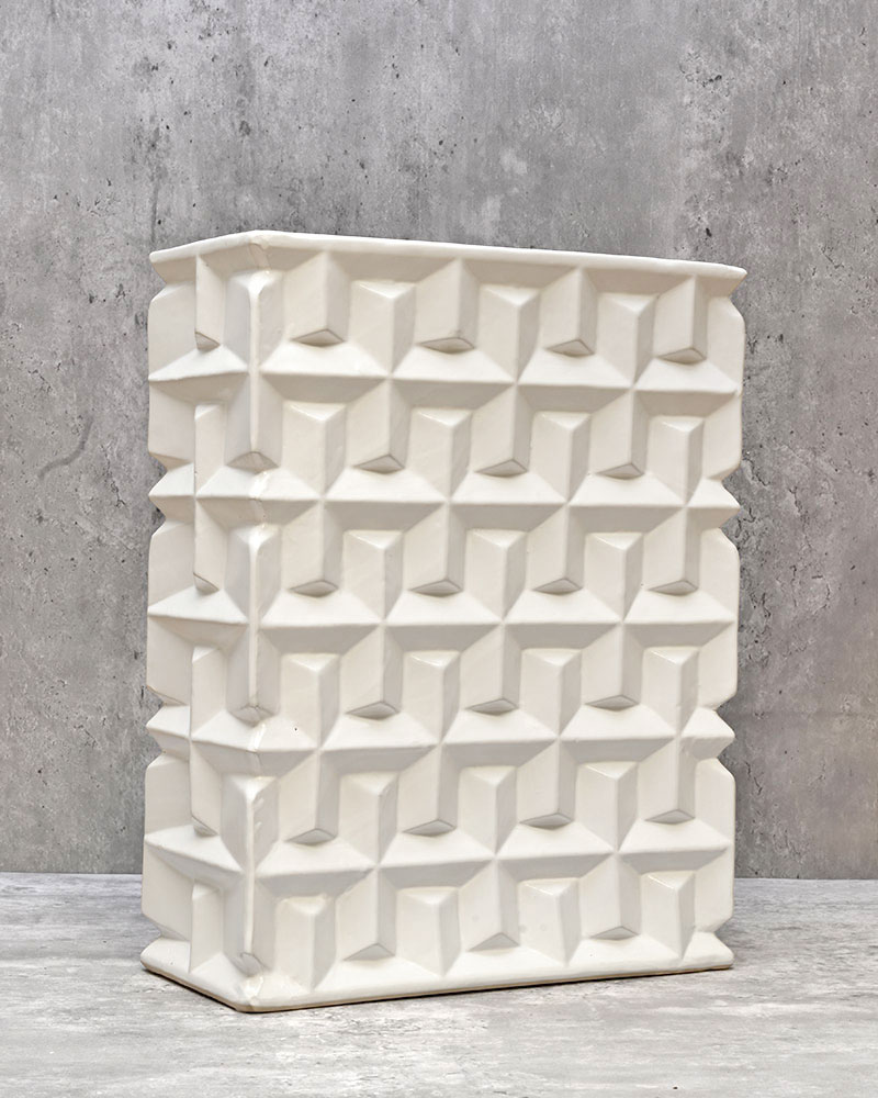 Featuring a richly textured finish that adds depth and visual interest, this container’s soft white colour provides a gentle, elegant backdrop. Together, they create a piece that enhances and highlights any arrangement, making it a beautiful focal point in any space.