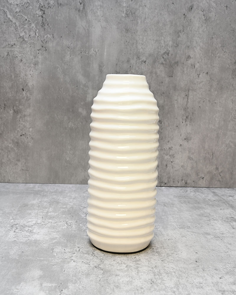 With its round, circular textured pattern, this white container subtly mimics the look of a traditional beehive. When paired with the other available sizes, these charming containers come together to create a cohesive and visually striking display.